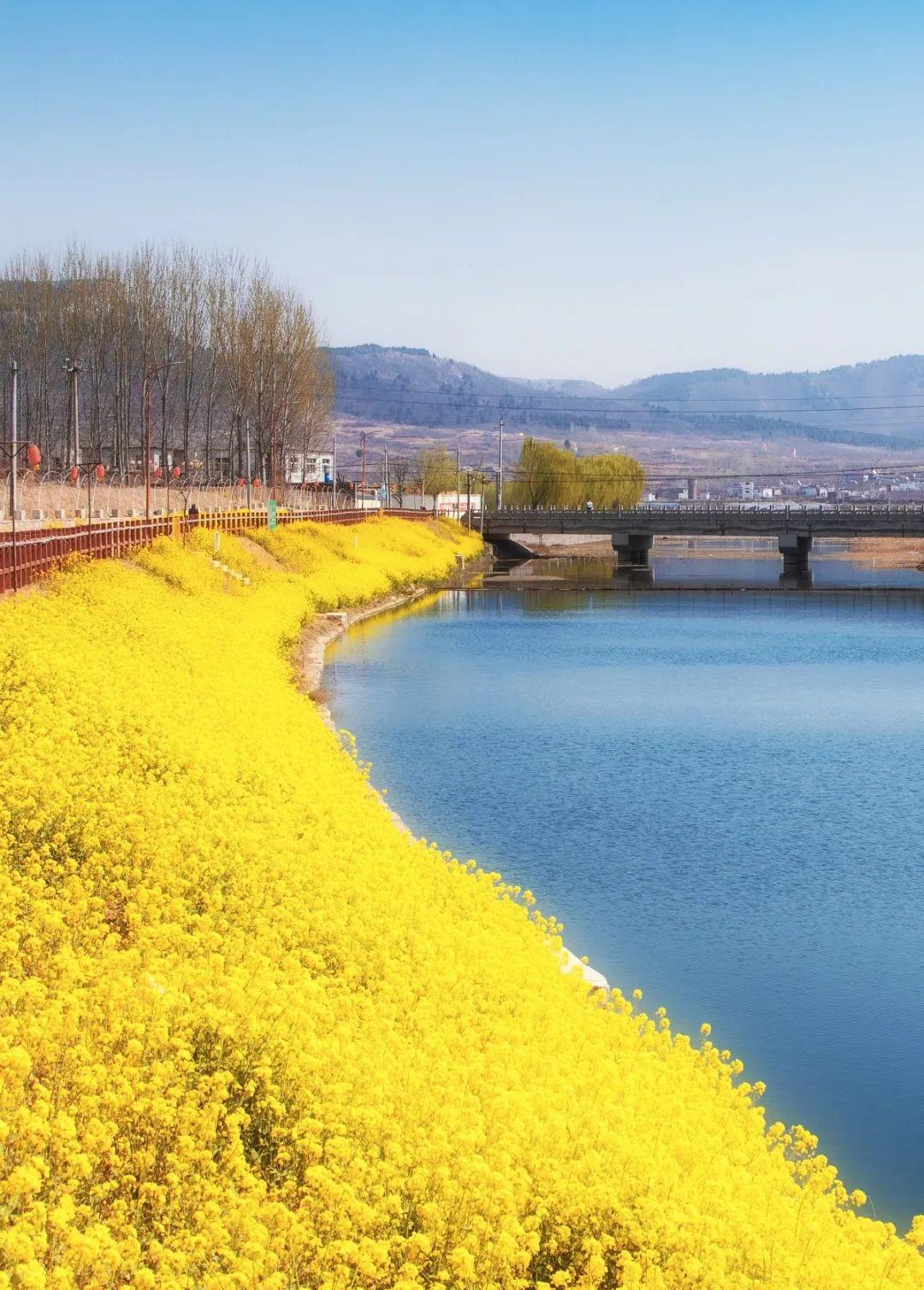 沿黄油菜花金色观光长廊南起回河街道,北至仁风镇,沿黄河大堤绵延13公里,预计4月份进入盛开季。