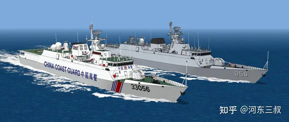 基于一舰多用不浪费原则,此前海警就已装备基于056型护卫舰发展而来的海警船,相比原型舰桥后移多出一个2号前甲板,并安装了一门30毫米机关炮火力更强。而且就在近日,海军22艘056型护卫舰移交给海警,拆除了反舰导弹和防空导弹,但76毫米速射舰炮、30毫米副炮、以及火控雷达和舰载发动机得以保留。同时在舰桥两侧加装LED屏,胡萝卜和大棒并存可以快速壮大海警队伍,同时在钓鱼岛等海域执法作业中拥有更强威慑力。
