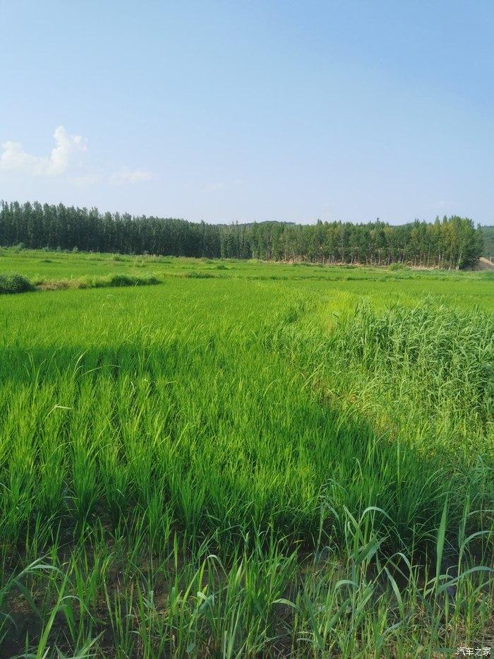 小房,水面,远处的稻田地和我的博越,和谐自然