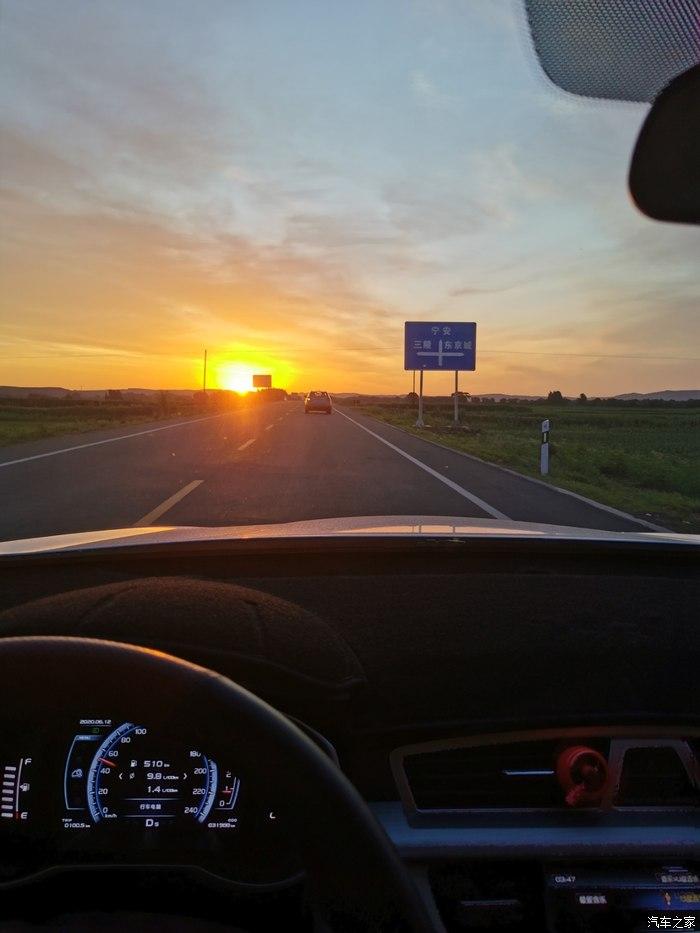 清晨的太阳,迎着朝阳博越前行在路上,这个油耗就说咋样吧