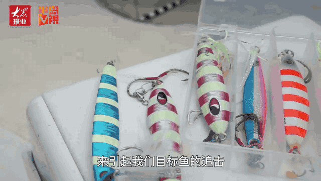 因为鱼咬钩大体有两种原因,一个是进食需要,一个是领地保护。就是看到有活的生物进入自己的领地,一些大鱼会本能地驱赶它们。路亚钓法和一般的钓法不同,钓鱼时手拿鱼竿不是静止的,而是需要上下晃动,让“小鱿鱼”“小彩鱼”像真的小鱼一样,在海里“游动”起来,才会吸引大鱼追逐咬钩。05船长的福利