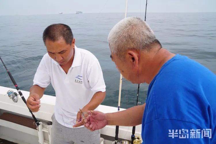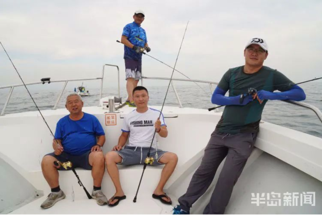 船长的福利“上鱼了,上鱼了。”随着一声欢呼,钓友尚先生钓上来一尾银灿灿的刀鱼。“大鲅鱼,看我钓的大鲅鱼!”王宗一从甲板一侧兴奋地跑过来,鲅鱼活蹦乱跳,背鳍旁边闪着淡绿色的银光。“看我这条刀鱼,拍出来更漂亮。”钓友们纷纷“开和”,对于自己的第一条鱼,他们都要拿出手机记录下这一刻的喜悦。看到钓友们“战况”丰盛,船长马海青也非常满意,作为船长,带着钓友们找到一个好的钓点,也是他的职责所在。马海青一边拿着鱼竿钓鱼,一边操控着方向盘。钓鱼艇外操方向盘的设计是船长的福利,方便船长一边开船,一边钓鱼。