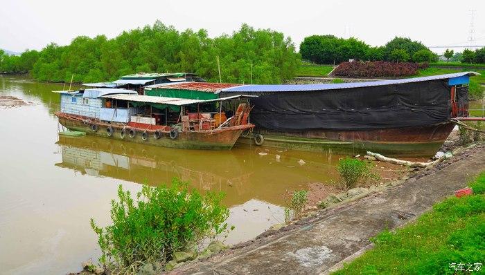 车子开上了堤坝,出现在我们面前的是一片气势磅礴的海,地平线与海平线融为了一体,堤坝、海平面、海平面上的船只,灰蒙蒙的天空,一层叠着一层,感觉融为了一体。昨天刚下过雨,今天天气也比较阴沉,海水也有点浑浊,但浑浊的海水与灰蒙蒙的天空是那么地相配。