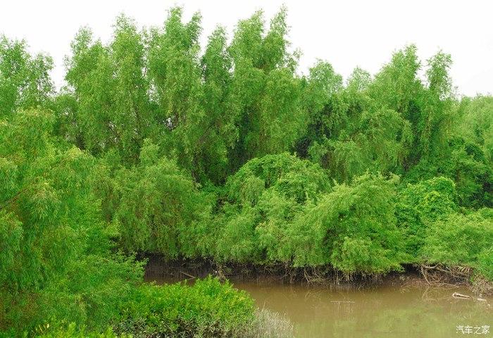 沿着堤坝继续往前开,来到了传说中的红树林景区。站在堤坝上,可以看到成片生长在水中郁郁葱葱的红树林丛。红树林长在水里,生在风中,生命不可谓不顽强。树林中时而有鸟叫声,时而有风吹声,时而有水荡声,宁静祥和,令人心旷神怡。