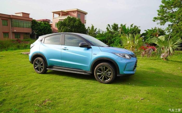 VE-1与田园风光来个合影,可以看到VE-1的LED近光灯采用了蓝色涂装,不张扬却充满了诱惑。整个车身设计带来很强烈的运动感,双色车身、黑色后视镜、17英寸酷黑轮毂,而且还加了迎宾踏板,这种车未动,人已心动的视觉感受,真让爱不释手啊。