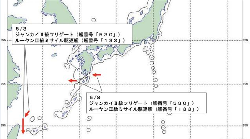 5月8日,我133海上编队,成员包括133“包头”号驱逐舰(052DL型)、530“徐州”号护卫舰(054A型),完成了对日本大隅海峡的穿越。