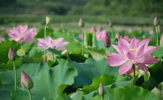 不仅有盛开的荷花,还有刚长出的莲蓬以及部分的花苞,坐上游船穿梭其中,又是“误入藕花深处”的闲情逸致。