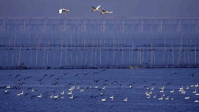 因为天然的地理环境优势,石臼湖还是小天鹅的“乐园”。每年冬天,从北方来的上千只小天鹅会在这里停留,最多时有上千只天鹅嬉戏追逐,场面壮观又美丽。
