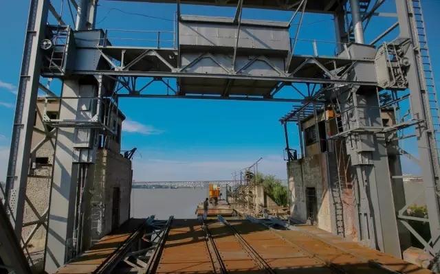 再往深处,撞见了钢铁巨人般的铁路轮渡栈桥遗址。