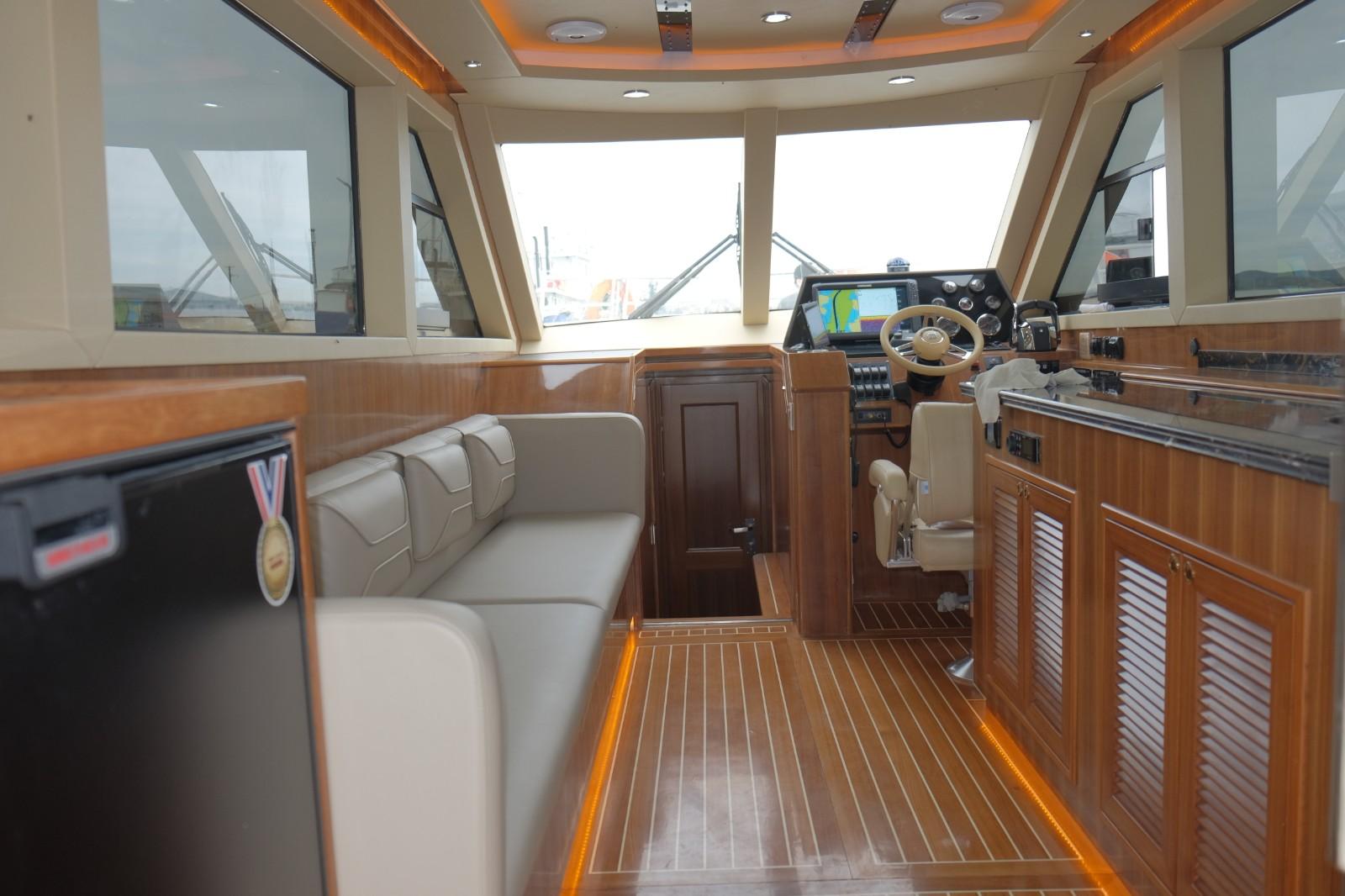 FG-50是由日本设计师设计的一款深海钓鱼艇,本船为II类游艇,全船总长15米,船宽3.7米,最大航速达30节,动力系统为两台VOLVO PENTA IPS高效柴油发动机,全船配置丰富,配有冰箱和厨房,让您能随时烹制海上美味佳肴。宽敞的舱内空间以及宽阔的室外甲板完全满足您深海垂钓以及聚会派对的需求。