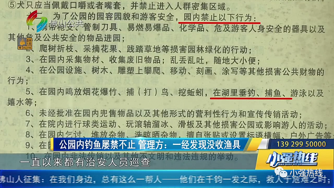 并让记者不要让他上镜公园方:一经发现,没收渔具