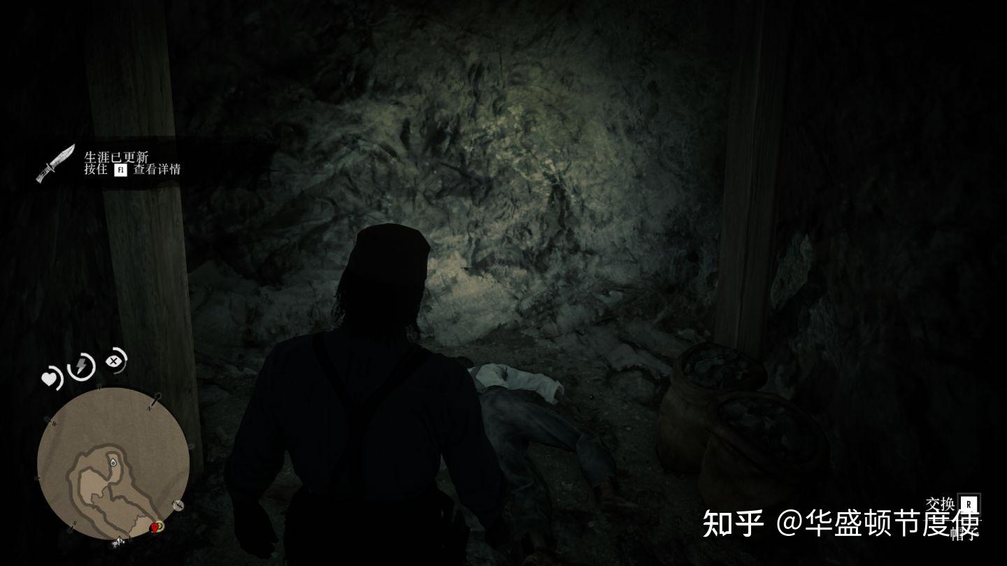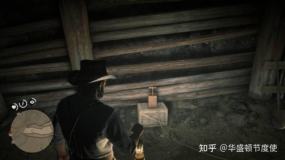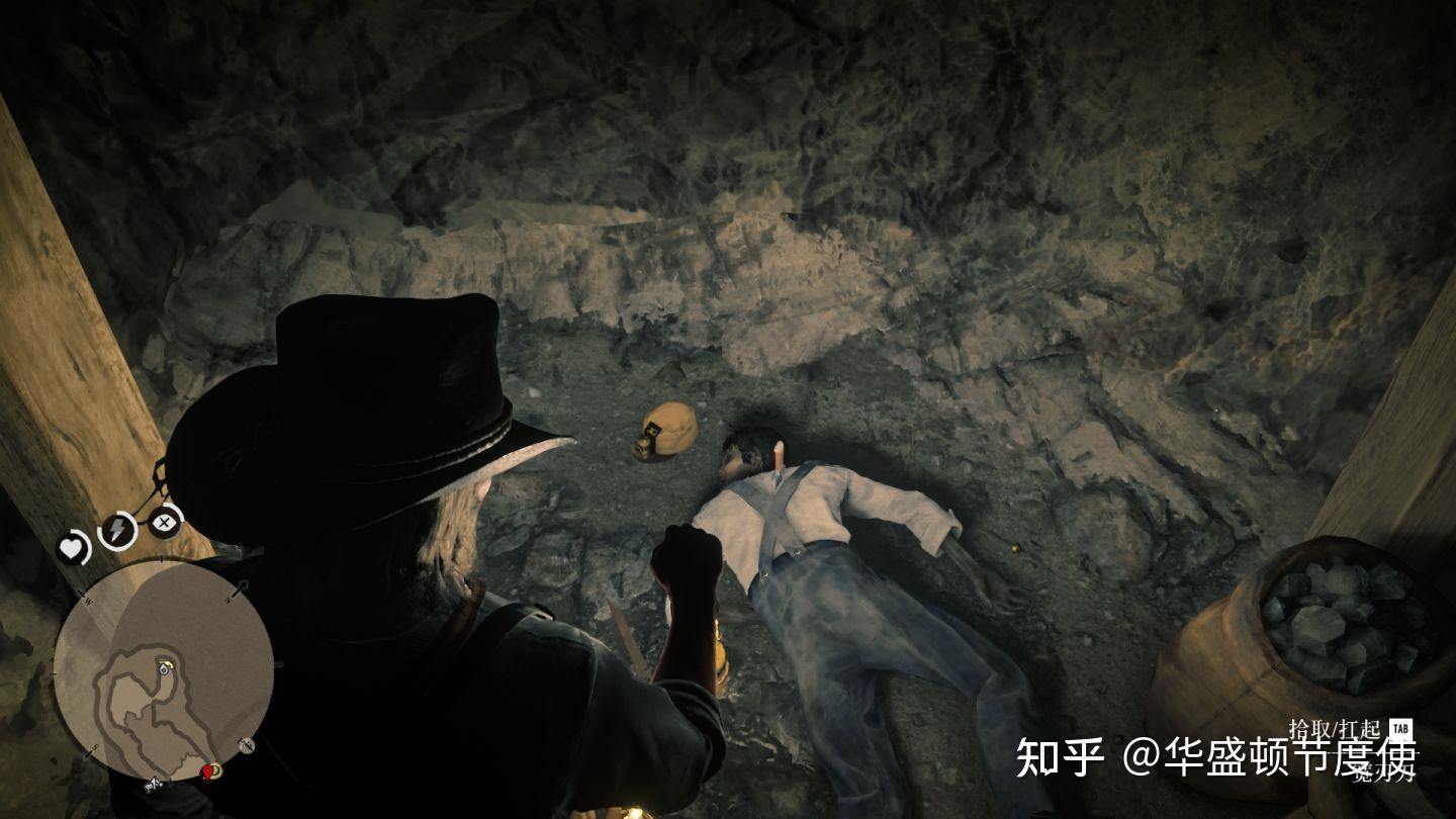 需要用引爆器将矿洞中堵住的石块炸开才会显示出一条通道,进去之后会发现一具身上插着把特殊刀刃的矿工尸体,旁边就是矿工帽,还有一个金块。