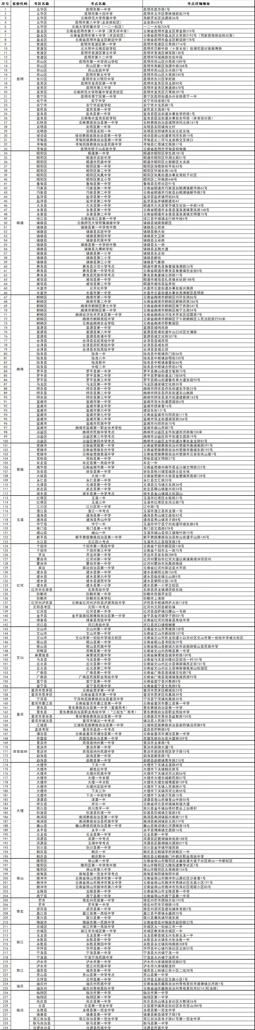 2019年云南省高考考点共设234个。有些考点容易混淆名称或走错校区,考生千万要分清。一定注意分清学校与中学一字之差、看清第几附中、注意区分校区。