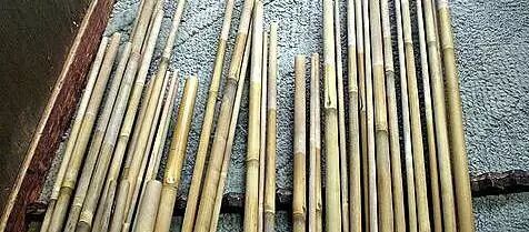 1.制作鱼竿的竹子,品种最好是楠竹、斑竹或者水竹,4米左右、尾节直径约在5厘米,3—5年的竹龄为佳。先把选好的竹子砍下,小心除去竹节上的枝叉(不要伤到竹青),放阴凉处几天,使其失去部份水份。