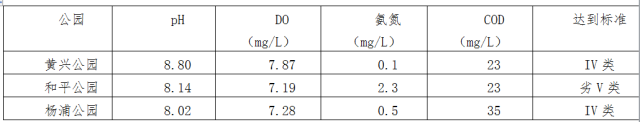 在进行水质调查前,我们先对这三个公园进行实地走访,了解公园的概况及景观水环境情况。①和平公园:水面有浮萍,水中可明显看到蚊虫。湖周围有树、草坪和碎石岸。存在垂钓和乱扔垃圾等不文明现象。
