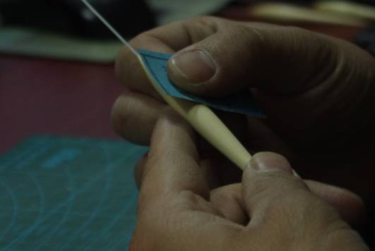 7.全部磨好后,用塑形器定型合拢(很少有完全合适的塑形器,因此要准备多个,分别对标身塑形),用酒精灯加热时要注意温度的控制。