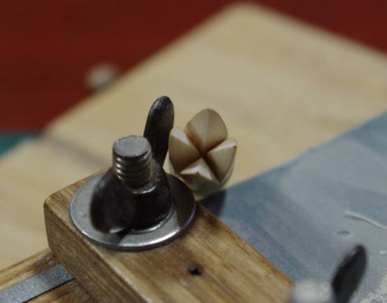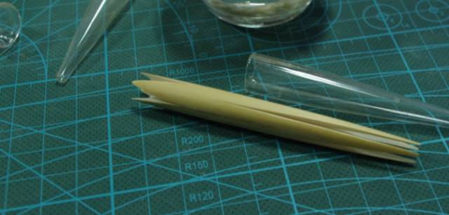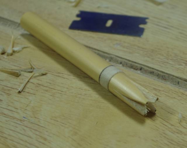 6.用同样的方法将标尾四等分(初学者宜“少切多磨”,虽然耗时,但成功率高,一旦切多了就功亏一篑了)。