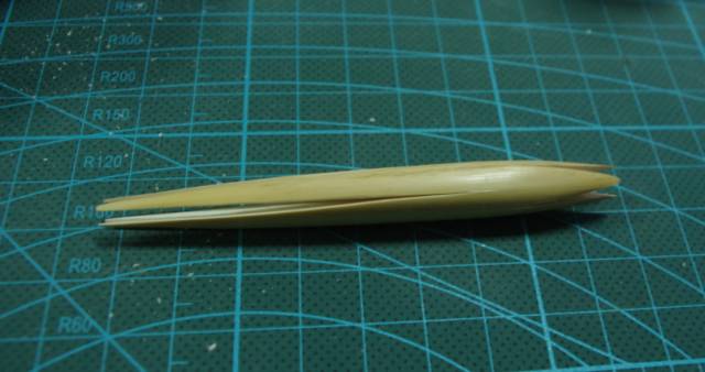 我要做的是一支钓行程兼底钓的枣核标,需要“44开刀”,即标肩分4瓣,标脚也分4瓣,见下图。