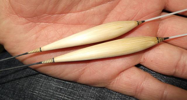 制作浮标的材料有很多——孔雀羽毛、芦苇、巴尔杉木、高粱杆、豪猪刺等,笔者对芦苇情有独钟,它纹理清晰自然,具有较高的灵敏度,反映鱼讯清晰利落。下面我就以芦苇为例,为大家介绍芦苇标的制作方法。 材料和工具:芦苇、空白的标尾、碳脚、标尾漆、标身漆(我用3组分的清漆)、白乳胶、502胶水、酒精灯、塑形器、普通棉线、美纹纸胶带、砂纸(240号、600号、1000号,追求专业者可借助磨床)、尺子(直尺、卡尺、圆径尺)、刀片,追求精度者可购置一台0.01精确度的电子秤。