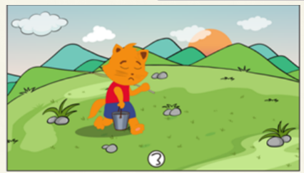 但当小猫回到小河边的时候,太阳已经落山了。小猫必须要回家了,看着空荡荡的小水桶,小猫就像泄了气的皮球。但他没办法,只好提起小水桶,扛起鱼竿回家了。