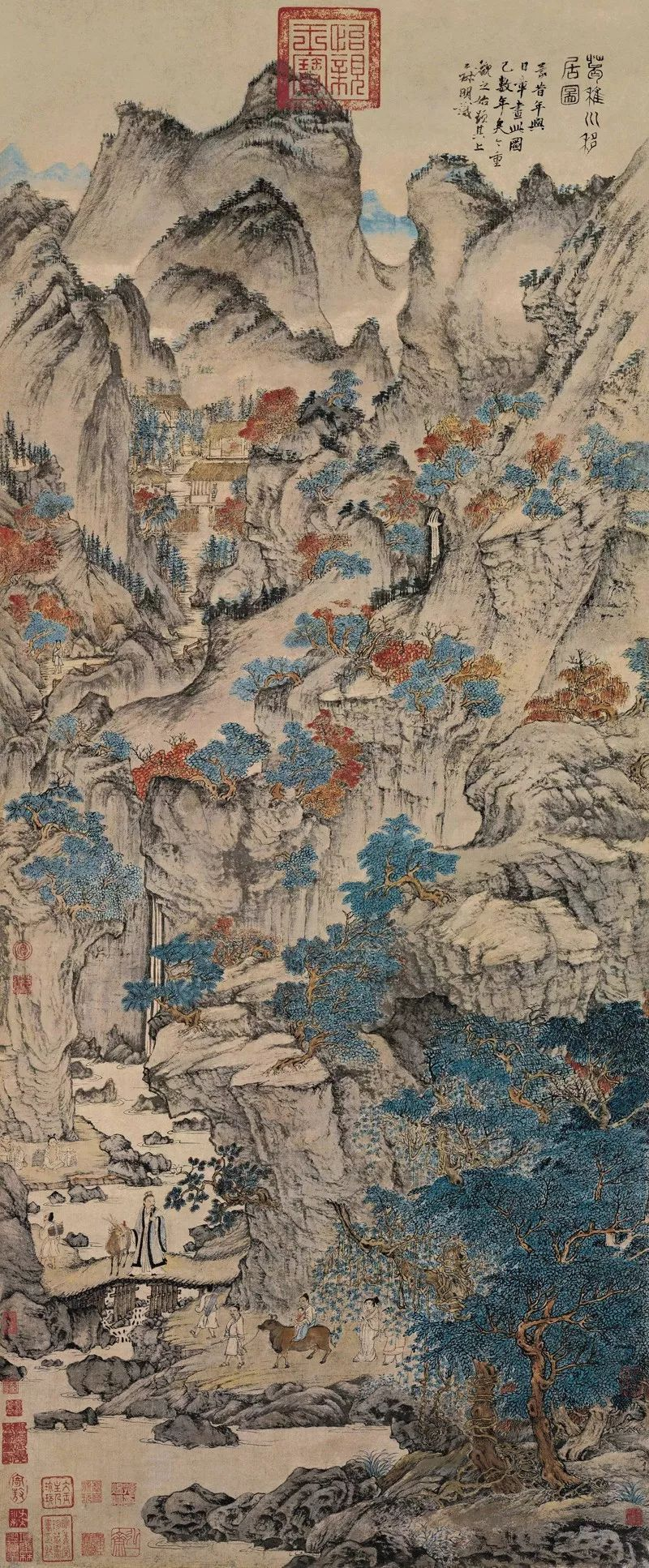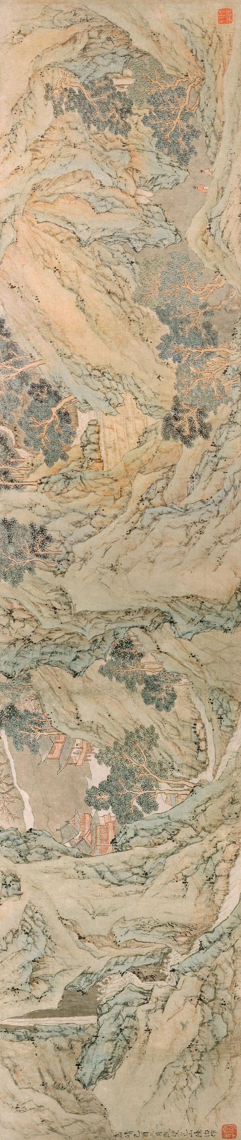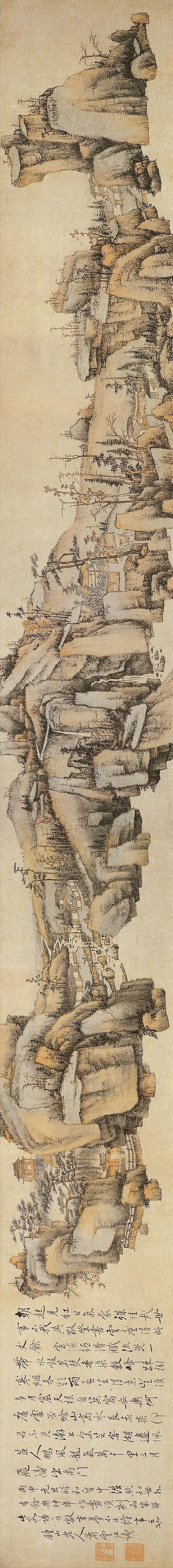 《游华阳山图》轴,纸本设色,239.6cm*102.3cm,馆藏不详