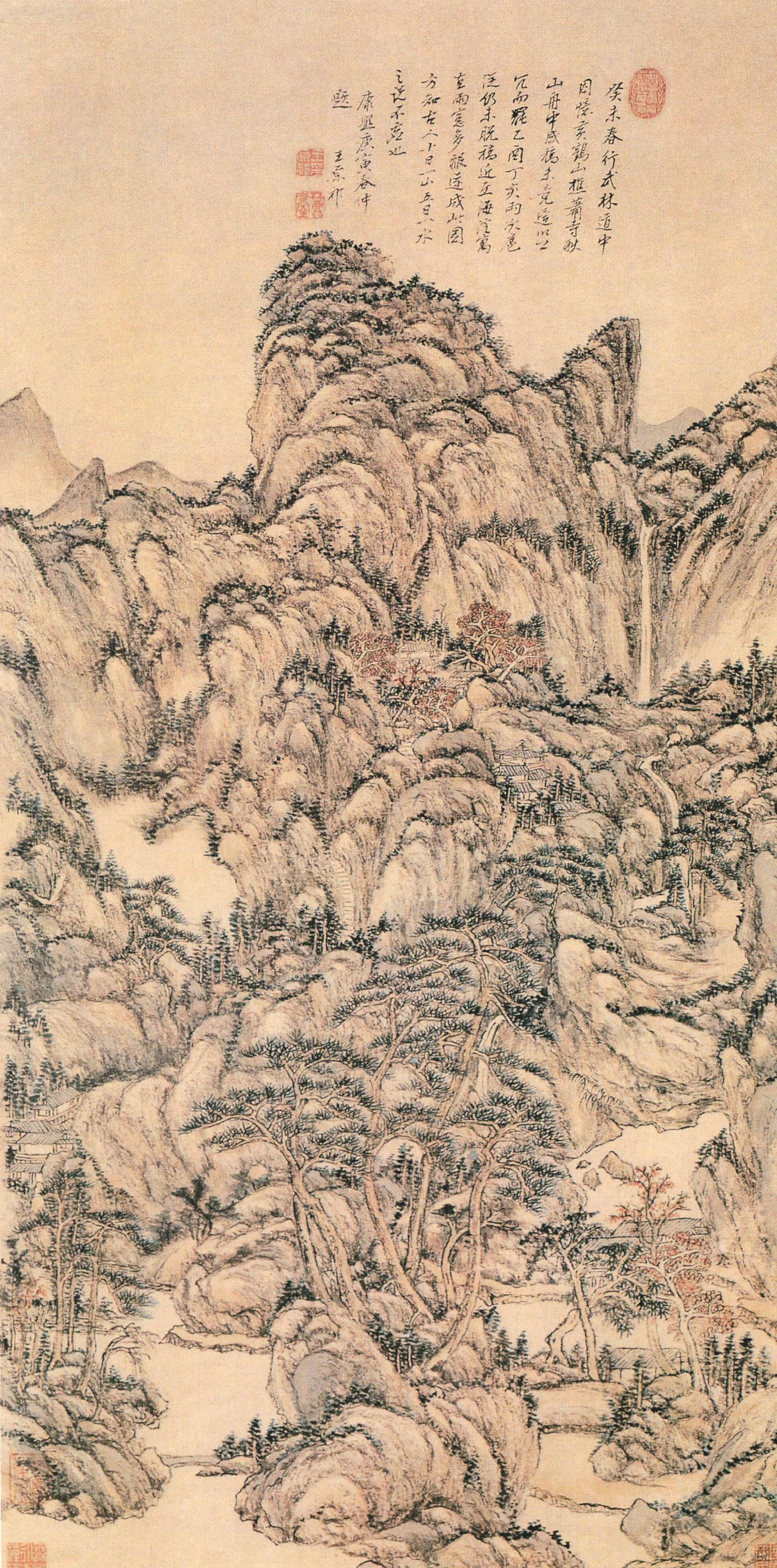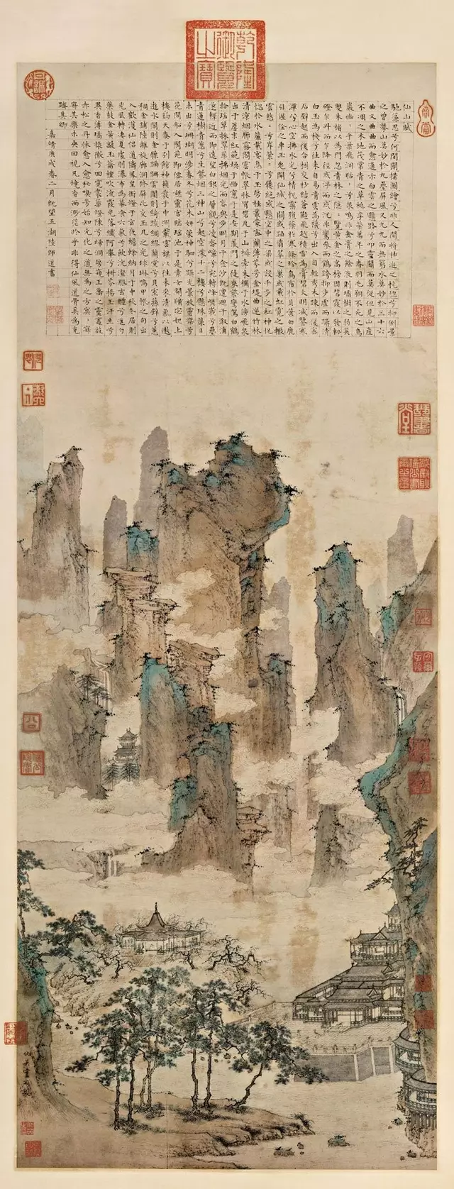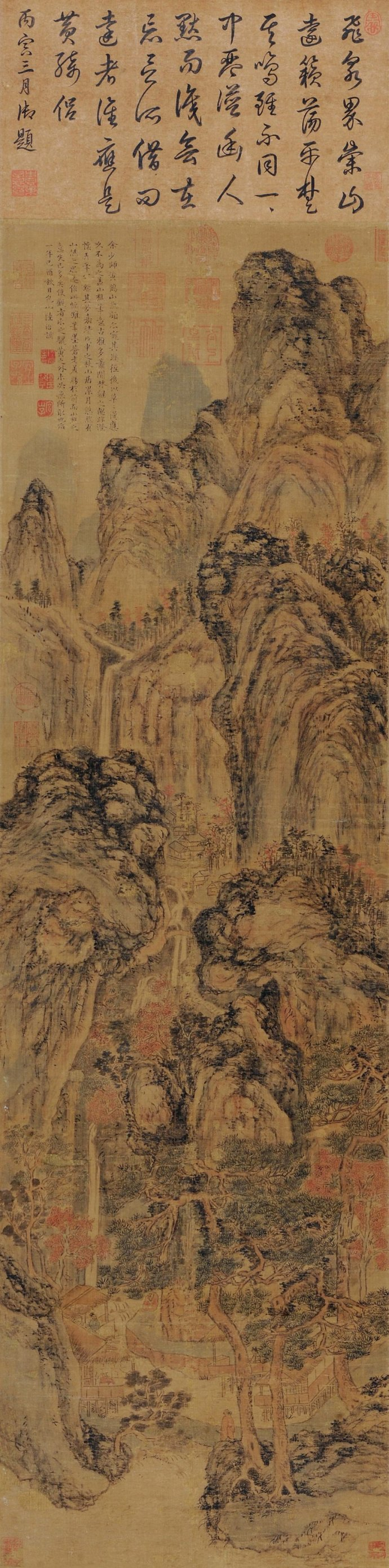 《游华阳山图》轴,纸本设色,239.6cm*102.3cm,馆藏不详