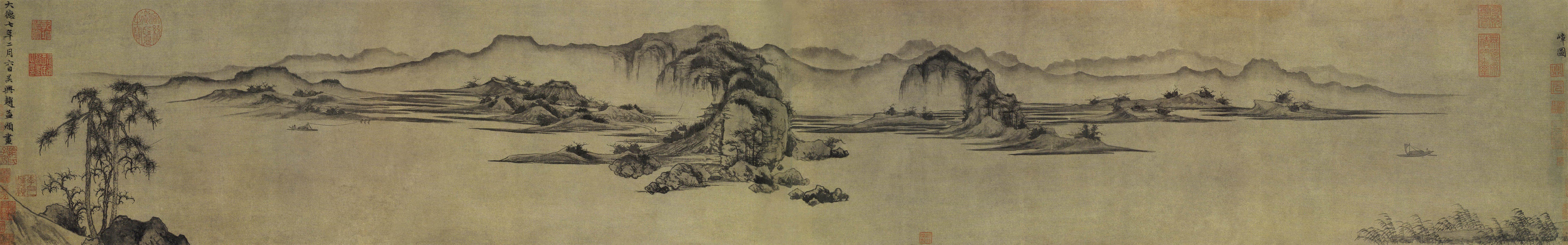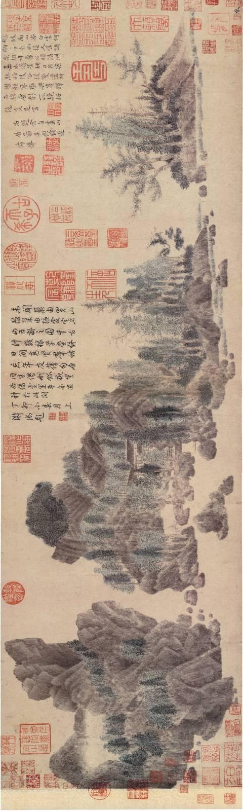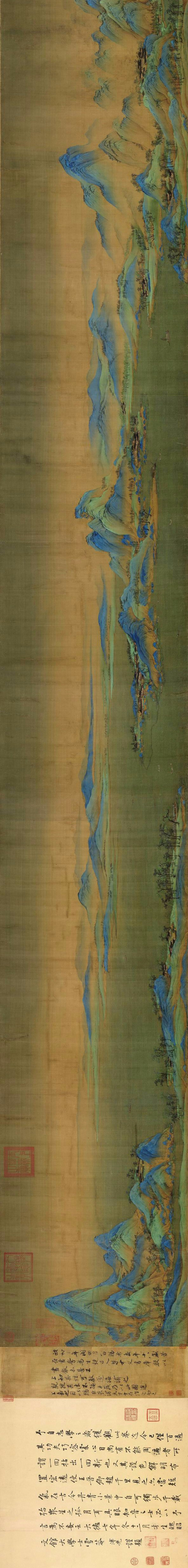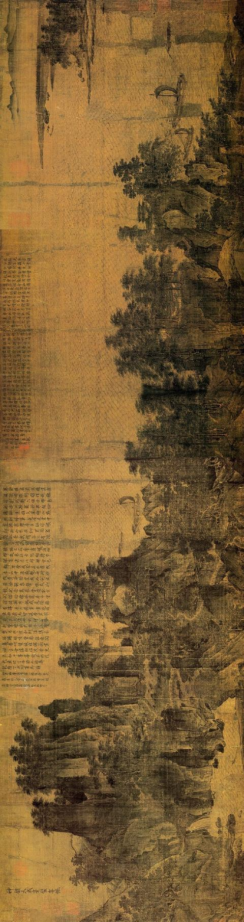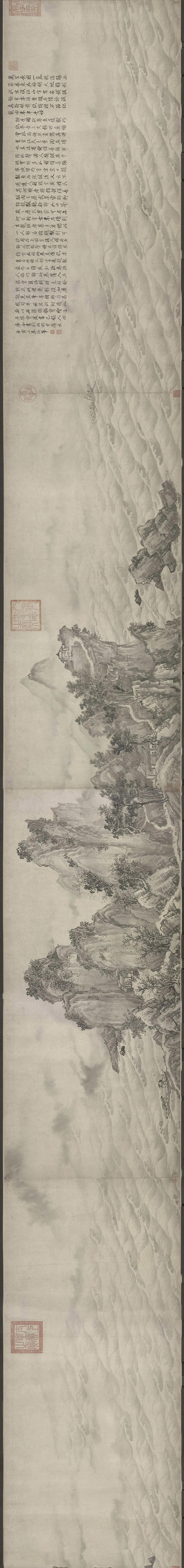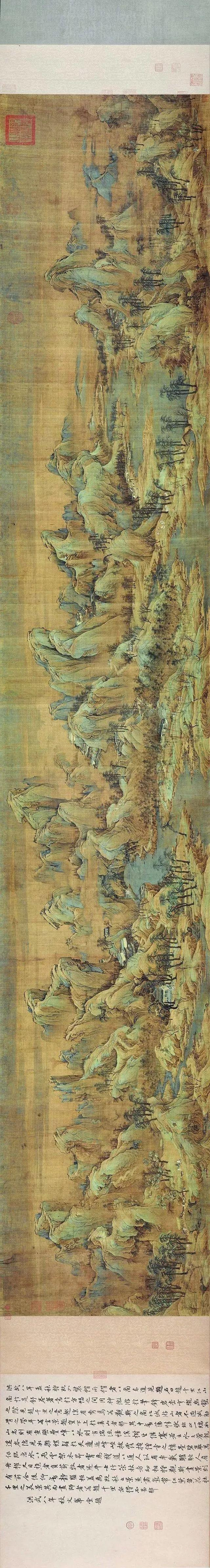 因故,本回答的大幅作品皆采取“横置长卷”(但不意味着只有长卷才横置)的阅读方法,这样一方面能解决长卷在手机端上难以清晰展现的问题;另一方面,在手机端上阅读,你会有一种像是古人看长卷,从右至左、边看边收的感觉,这种做法也很贴合古人把玩长卷时的习惯。