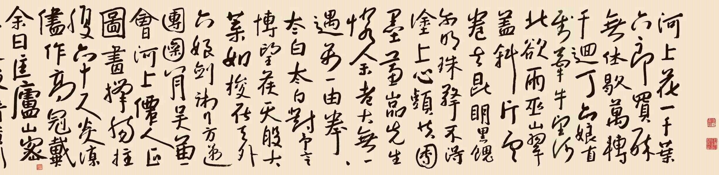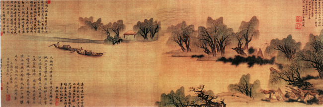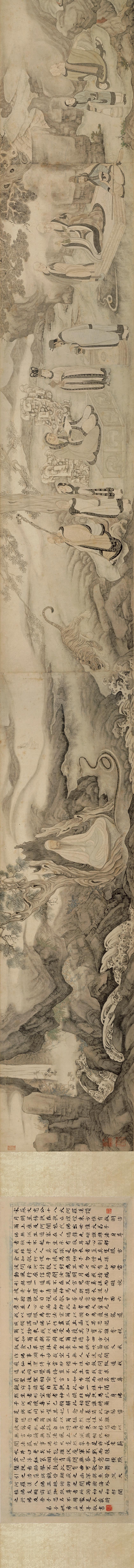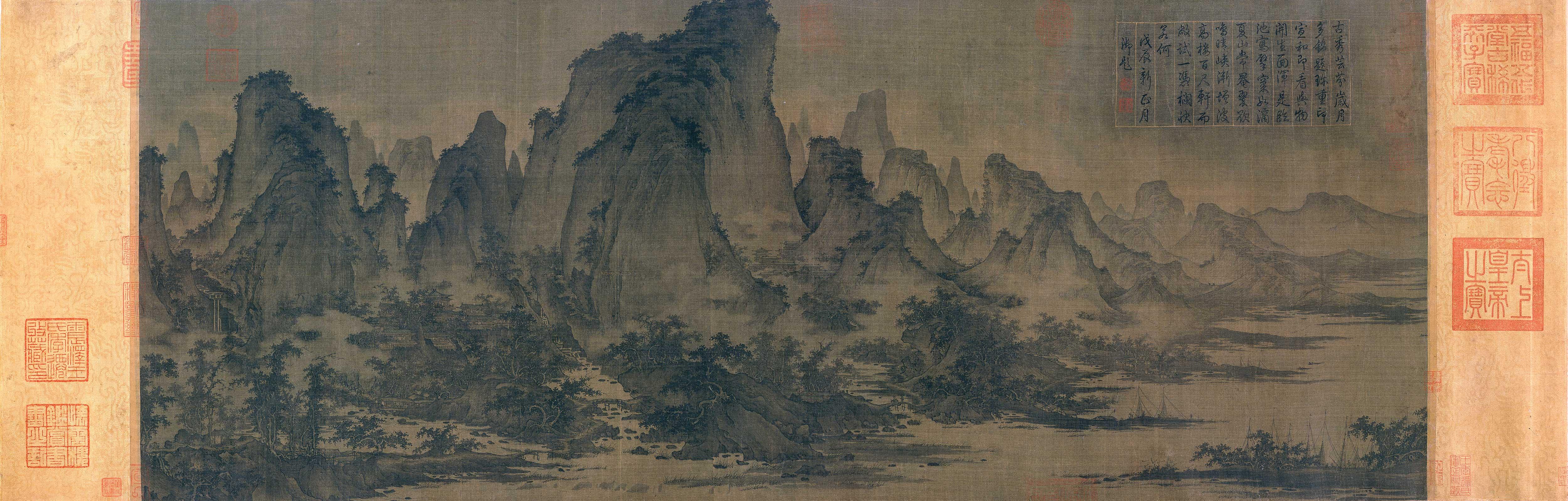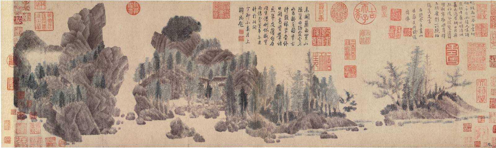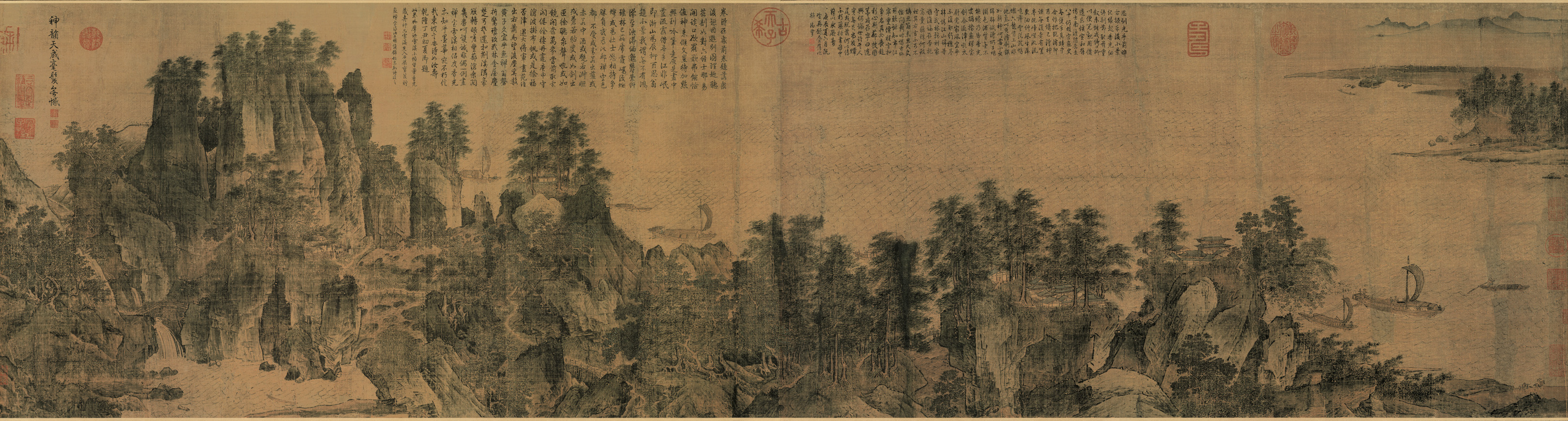 因故,本回答的大幅作品皆采取“横置长卷”(但不意味着只有长卷才横置)的阅读方法,这样一方面能解决长卷在手机端上难以清晰展现的问题;另一方面,在手机端上阅读,你会有一种像是古人看长卷,从右至左、边看边收的感觉,这种做法也很贴合古人把玩长卷时的习惯。