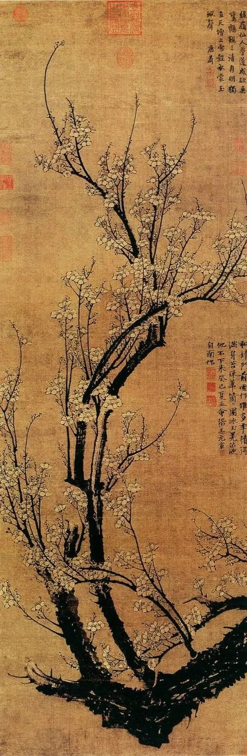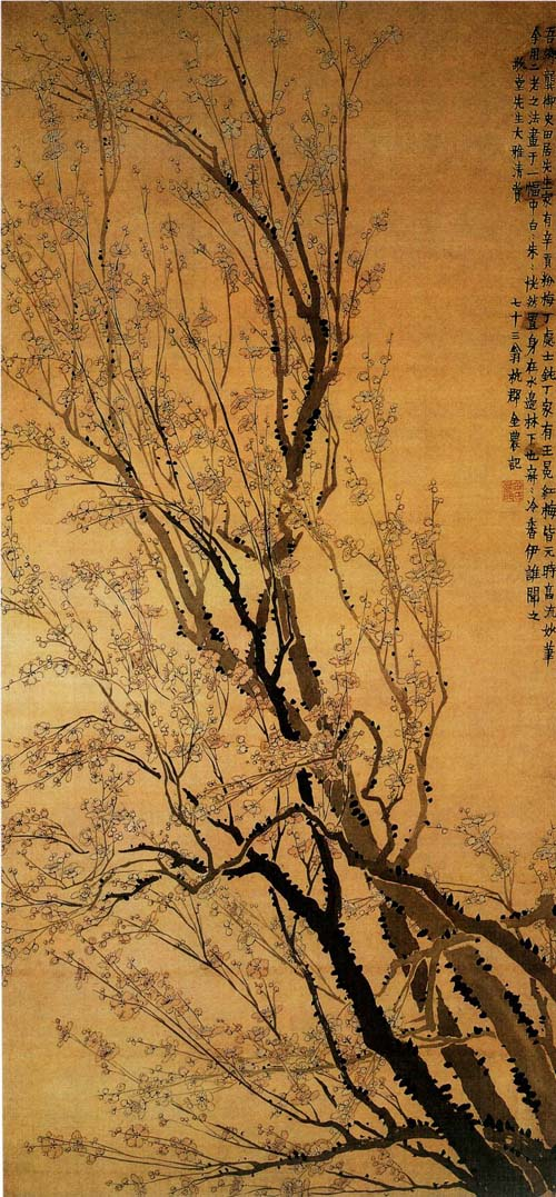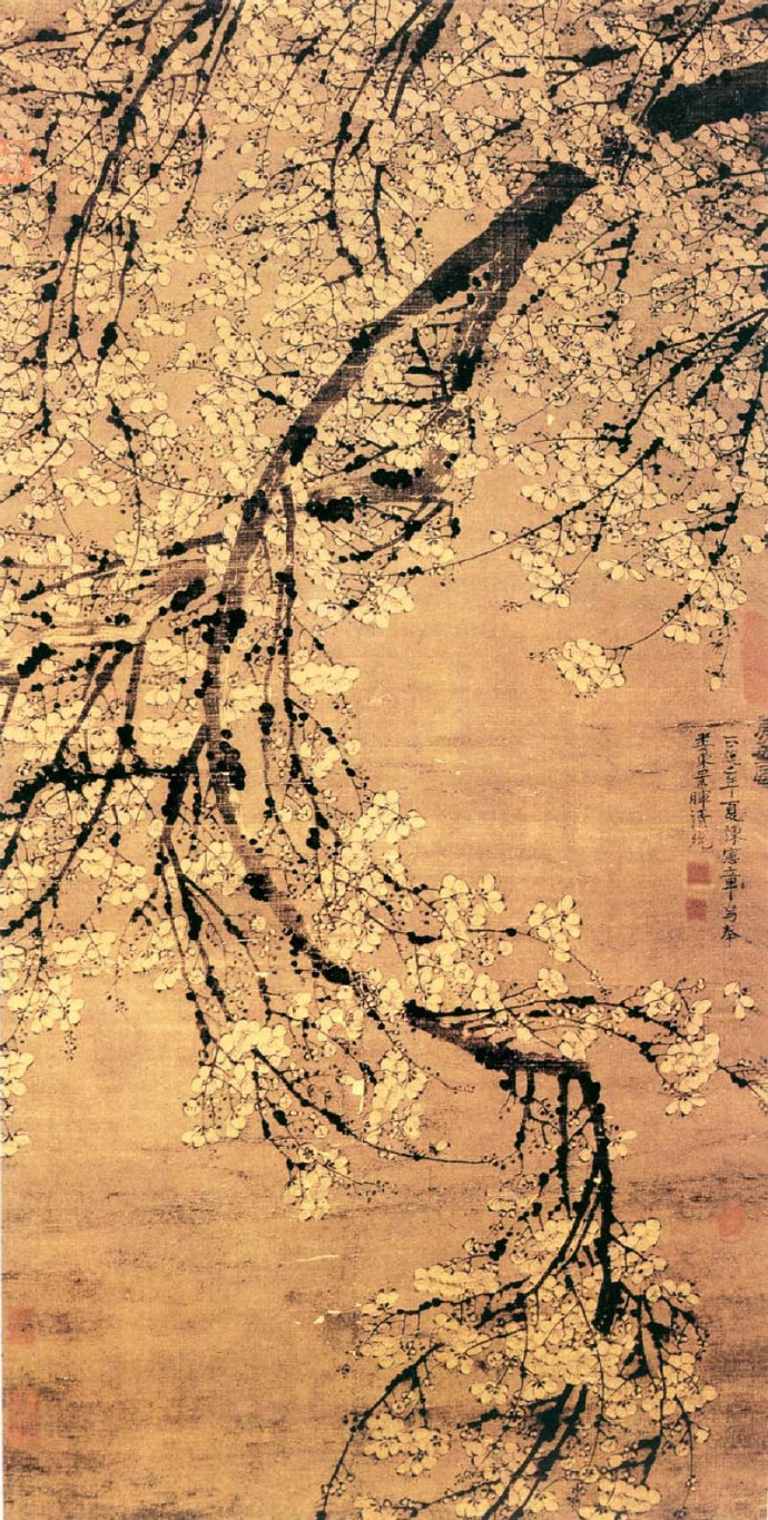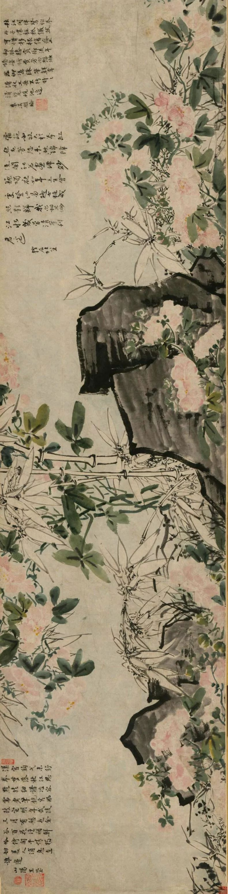 《红绿梅花图 》轴,绢本设色,138cm*65.5cm,上海博物馆藏