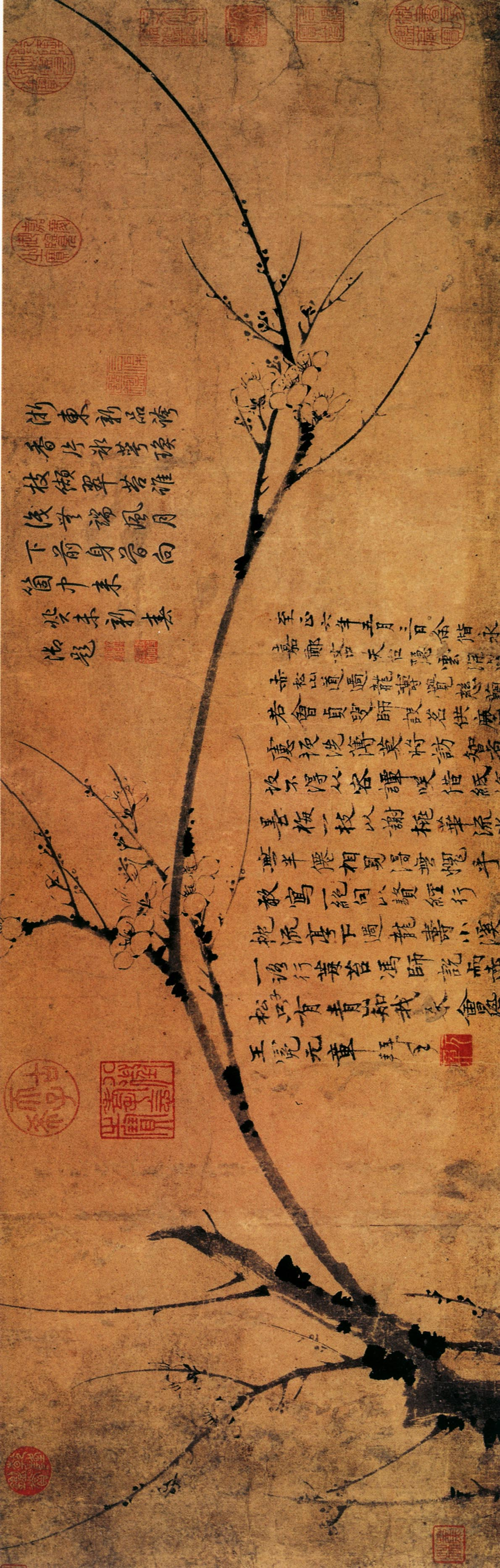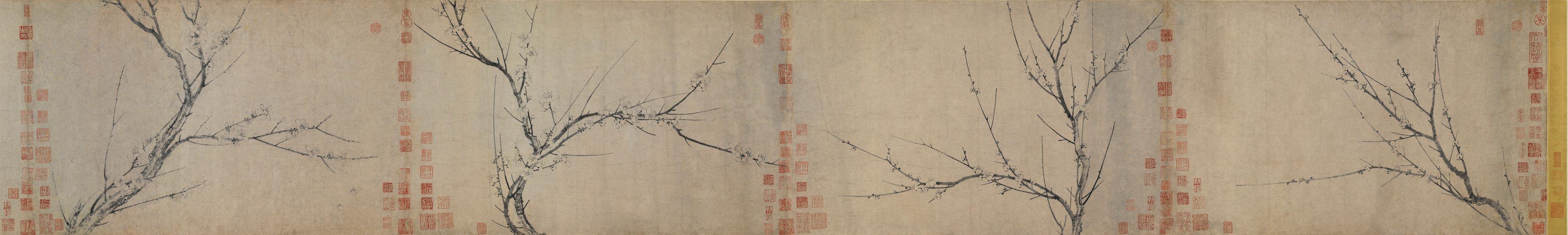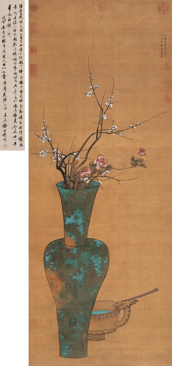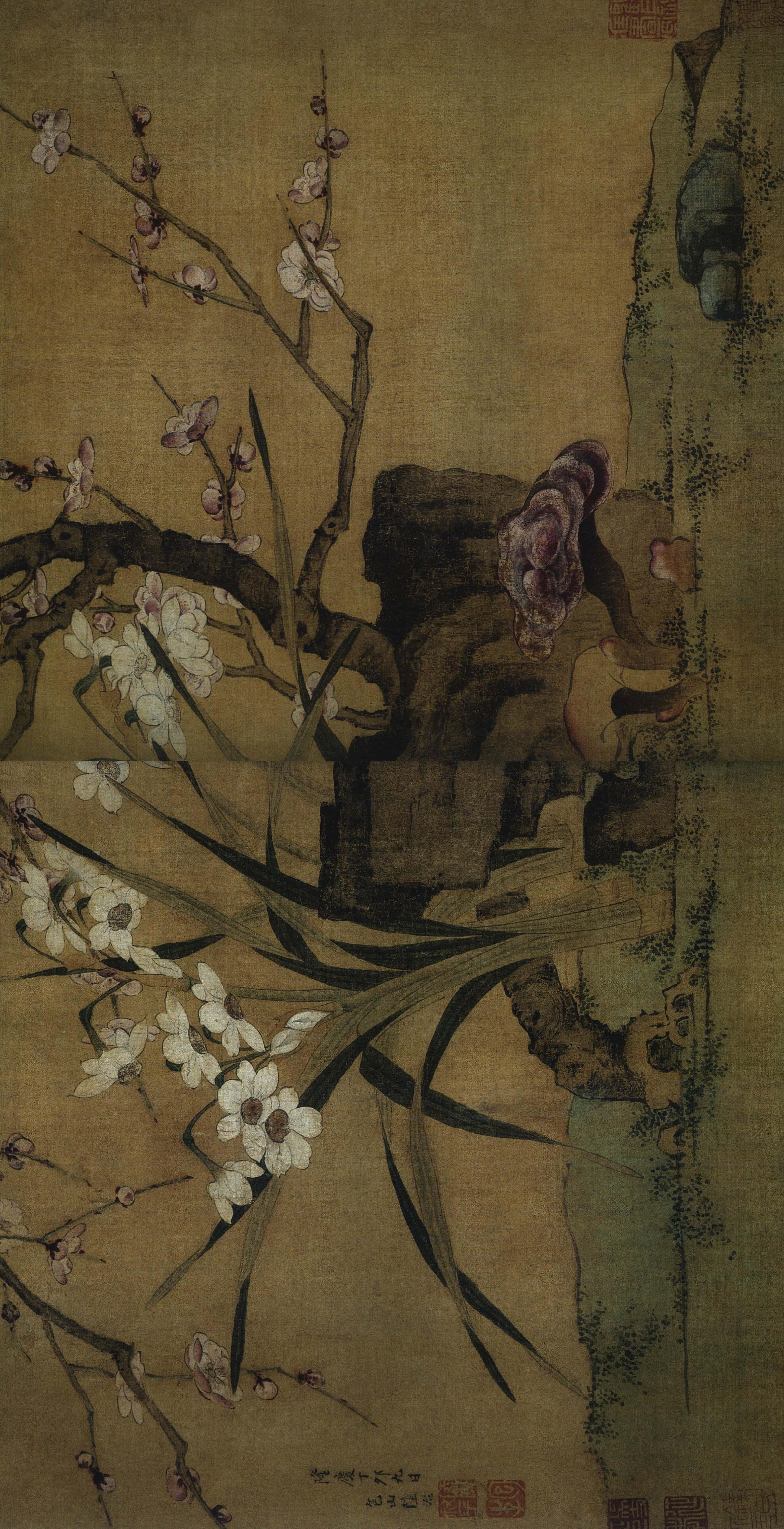 《红绿梅花图 》轴,绢本设色,138cm*65.5cm,上海博物馆藏
