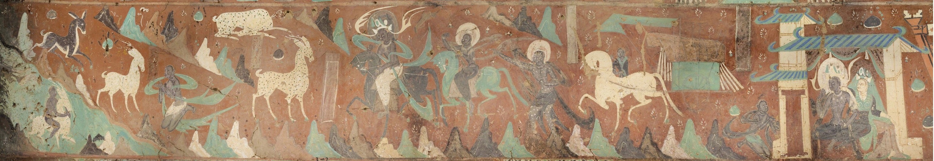 《鹿王本生图》是莫高窟第二百五十七窟壁画的主要题材。“鹿王本生”是说释迦牟尼前生是一只九色鹿王,他救了一个落水将要淹死的人反被此人出卖的故事。