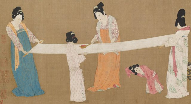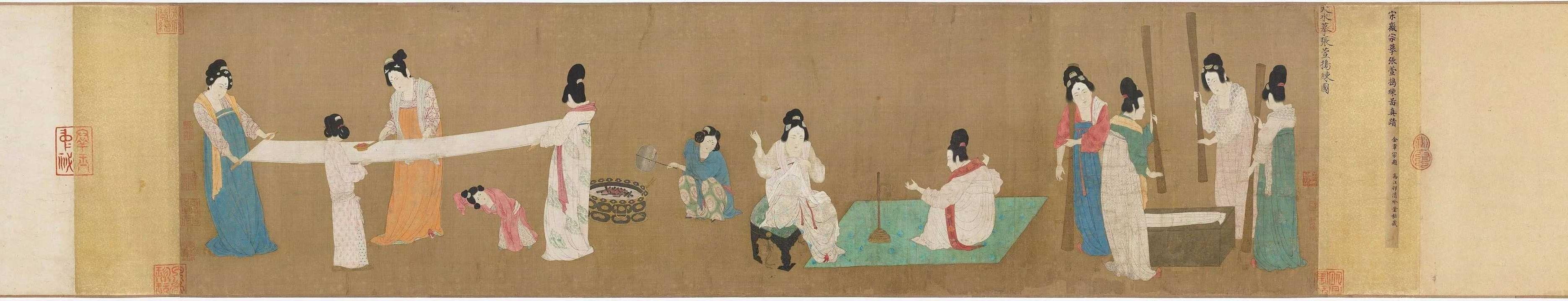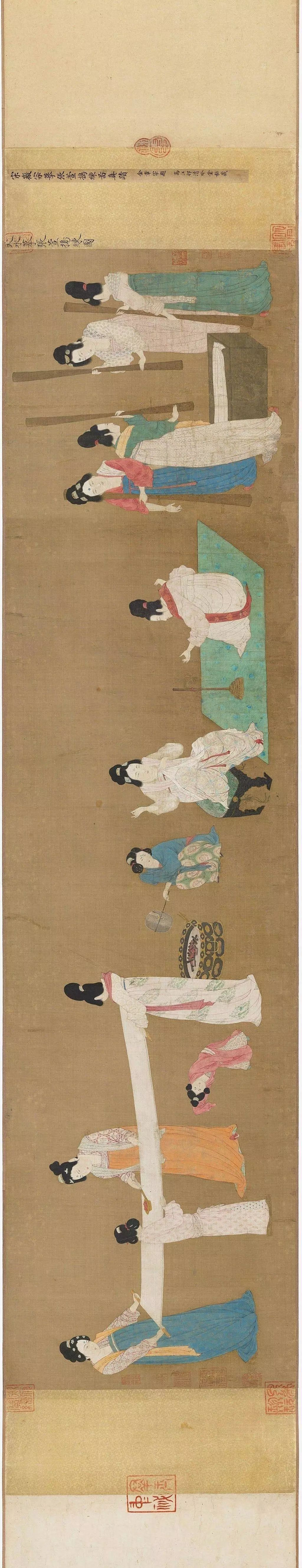《捣练图》卷,北宋摹本,绢本设色,37cm*147cm,美国波士顿博物馆