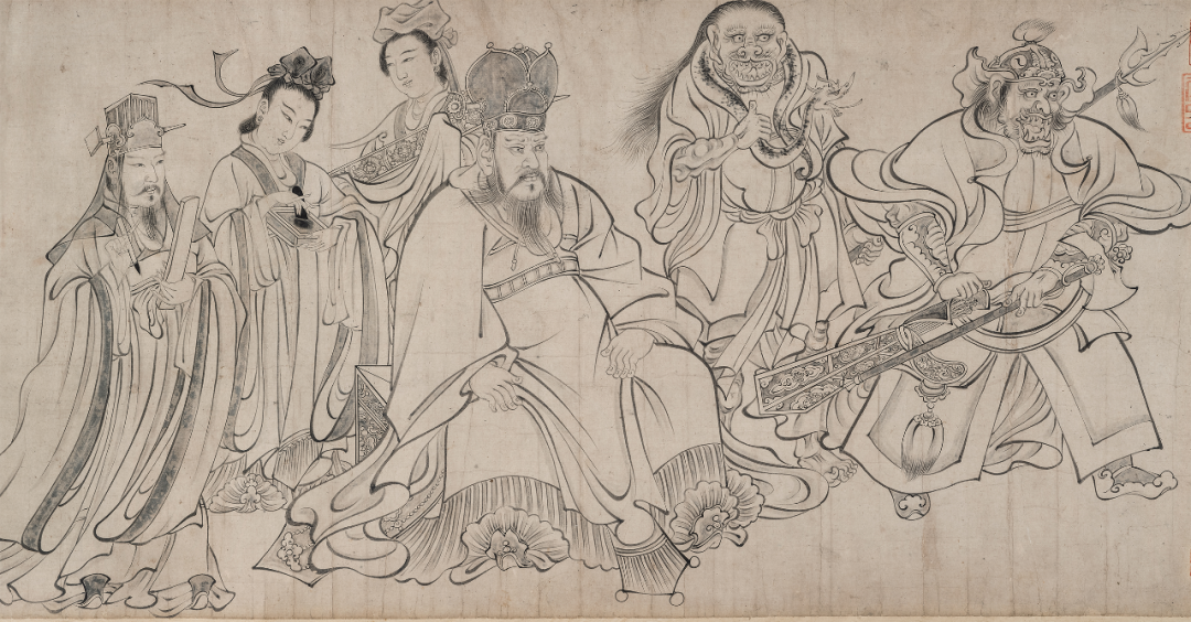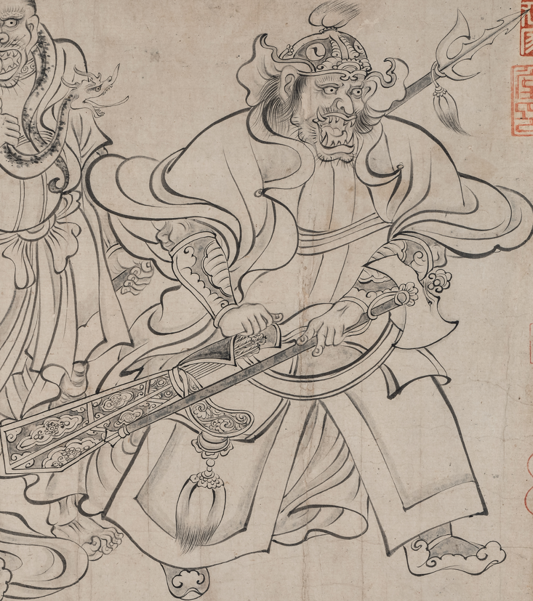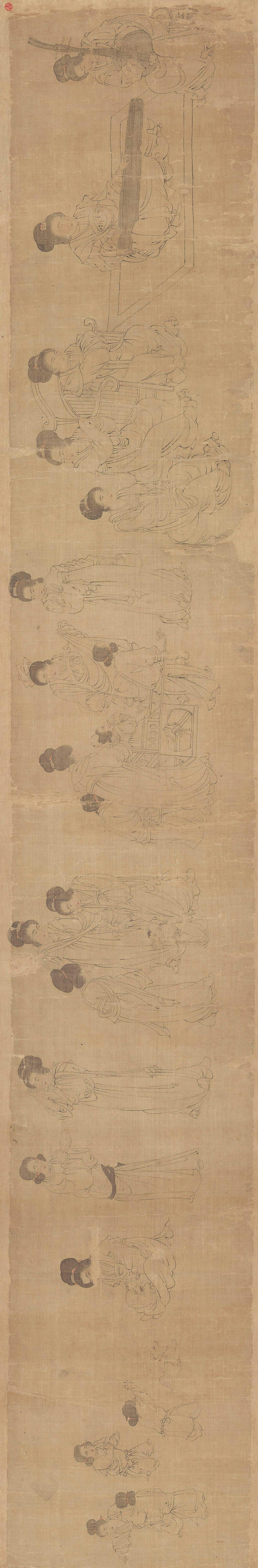 《送子天王图》,纸本墨笔,35.5cm*338.1cm,日本大阪市立美术馆藏
