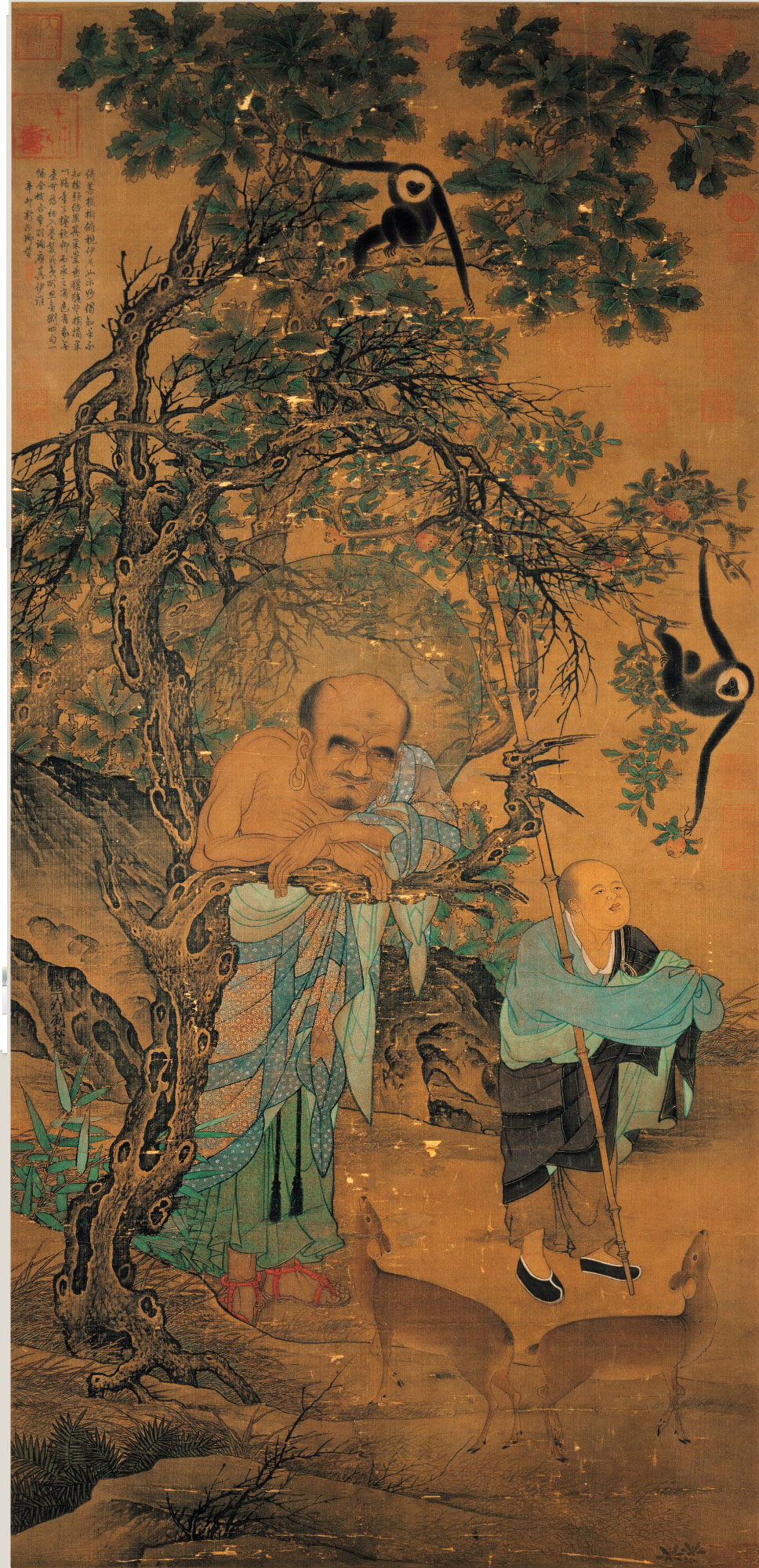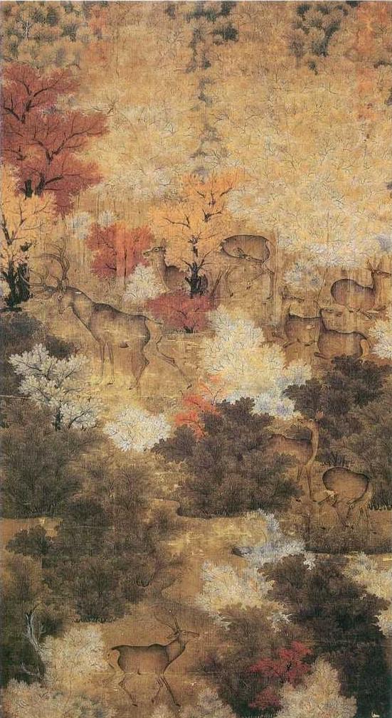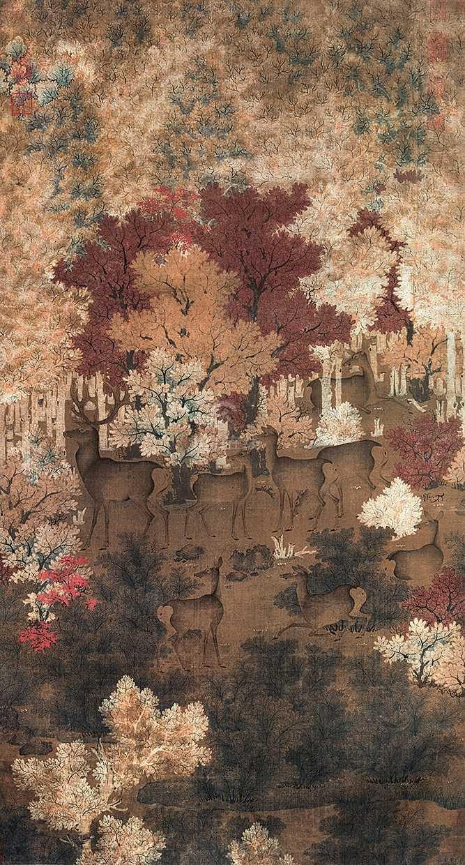 《秋林群鹿图》轴,绢本设色,118cm*67cm,台北故宫博物院藏