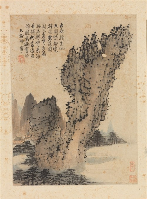 郭河阳论画,山有可望者、可游者、可居者。余曰:江南江北,水陆平川,新沙古岸,是可居者。浅则赤壁苍横,湖桥断岸,深则林峦翠滴,瀑水悬争,是可游者。峰峰入云,飞岩堕日,山无凡土,石长无根,木不妄有,是可望者。今之游于笔墨者,总是名山大川未览,幽岩独屋何居?出郭何曾百里入室,那容半年交泛滥之酒杯,货簇新之古董,道眼未明,纵横习气安可辩焉?自之曰:此某家笔墨,此某家法派,犹盲人之示盲人、丑妇之评丑妇尔,赏鉴云乎哉。不立一法,是吾宗也,不舍一法,是吾旨也,学者知之乎。时辛未二月,余将南还客且憨斋,宫纸余案,主人慎庵先生索画并识请教,清湘枝下人石涛元济。——石涛 自题