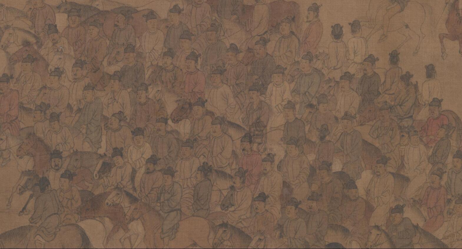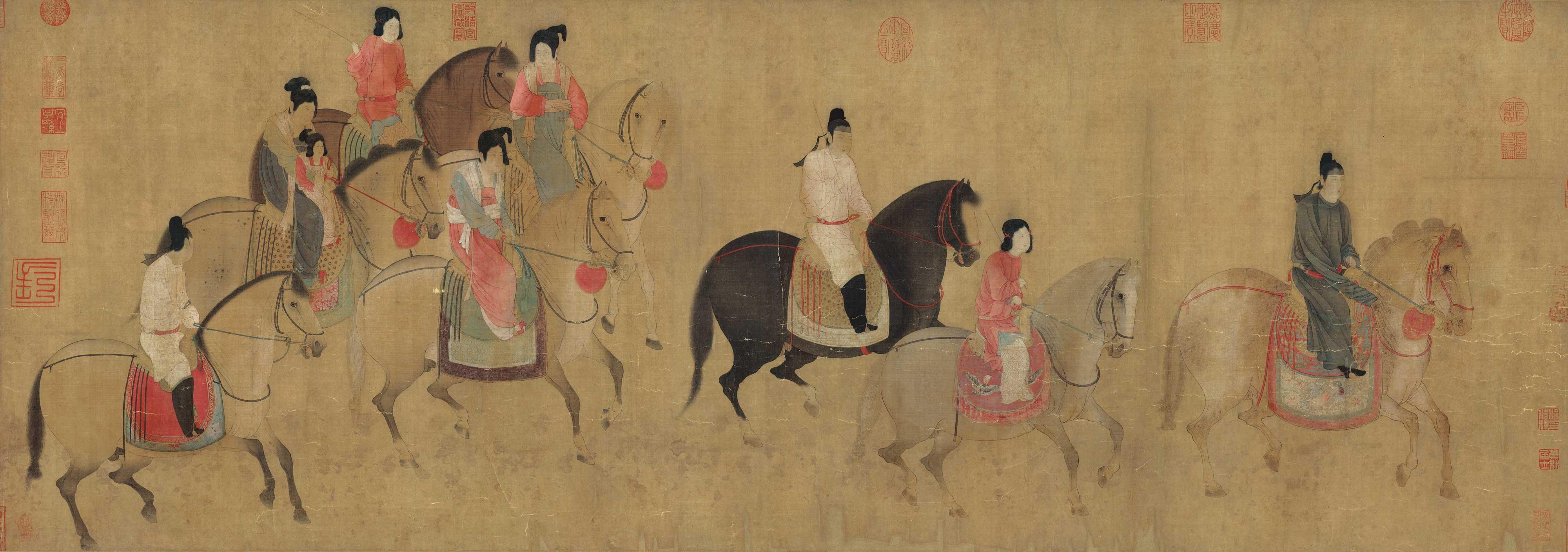 《虢国夫人游春图》卷,北宋摹本,绢本设色,51.8cm*148cm,辽宁省博物馆藏