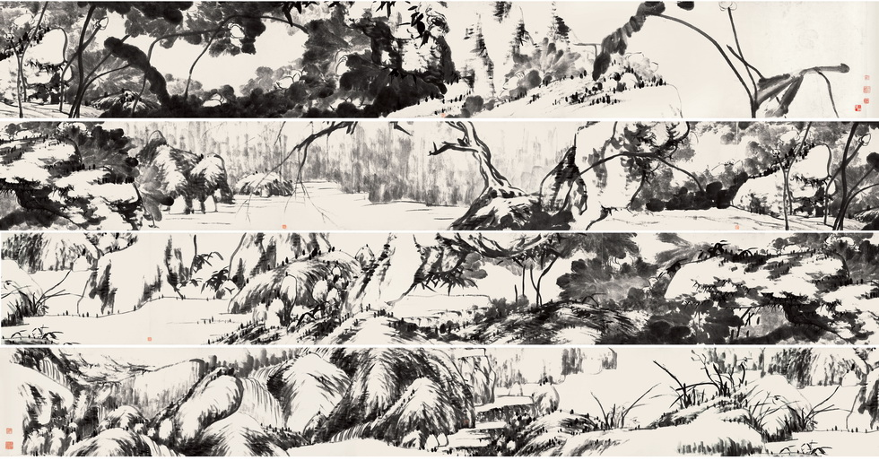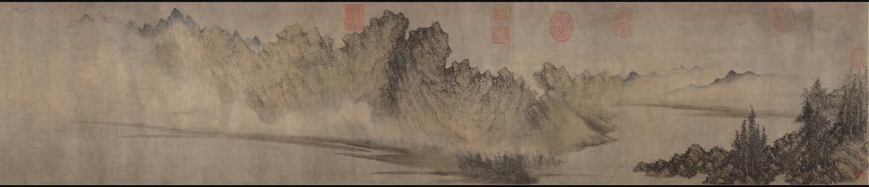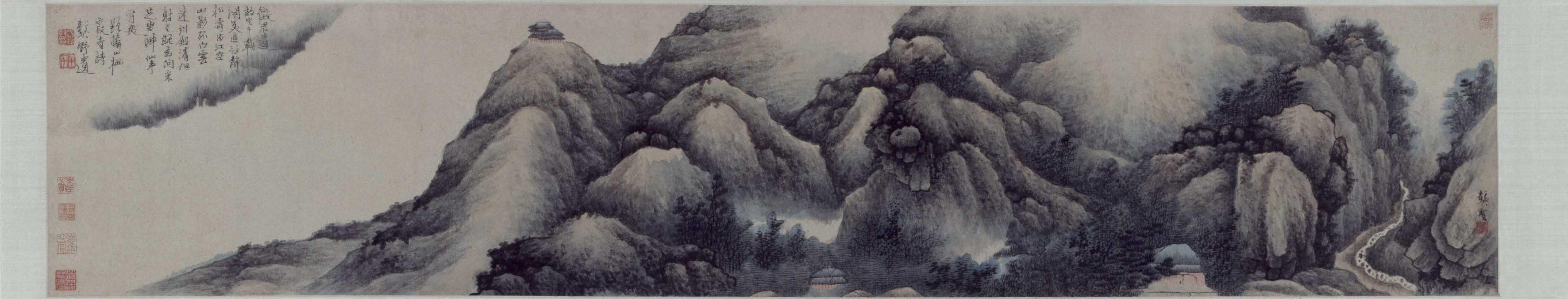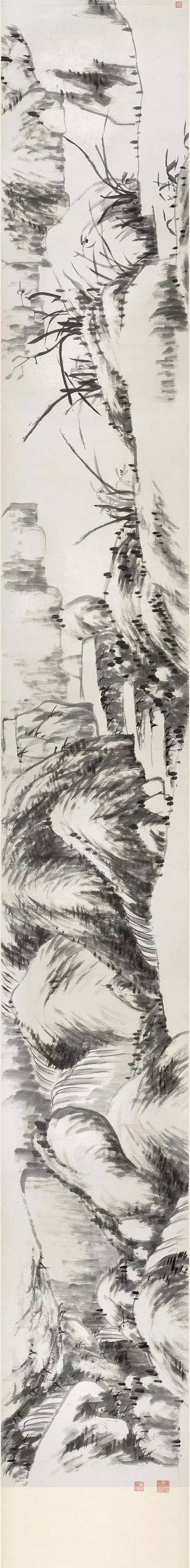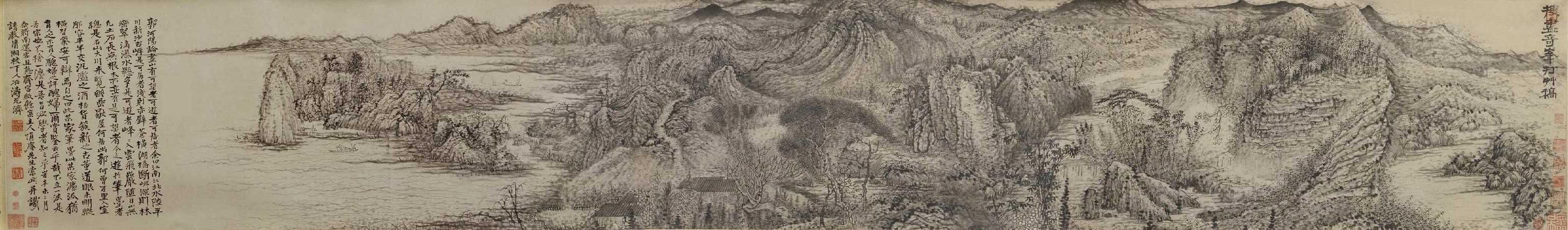 《搜尽奇峰打草稿图》卷,纸本墨笔,34cm*287cm,北京故宫博物院藏