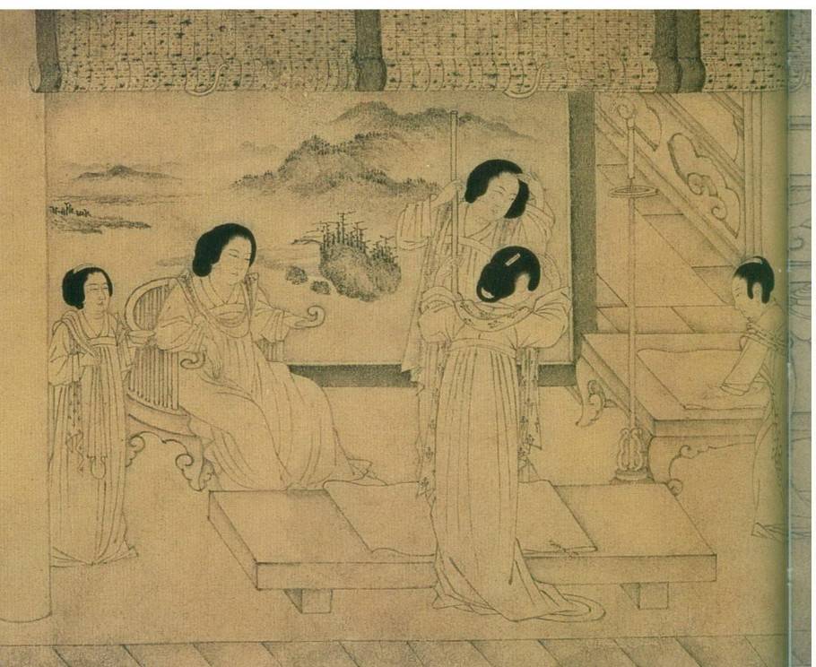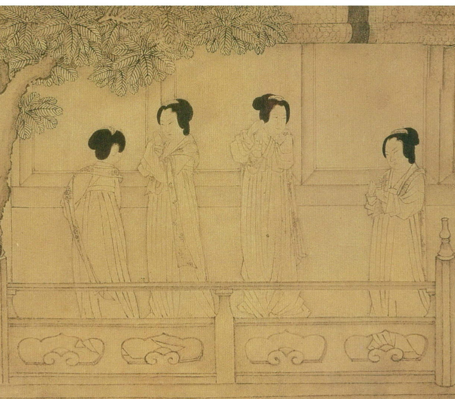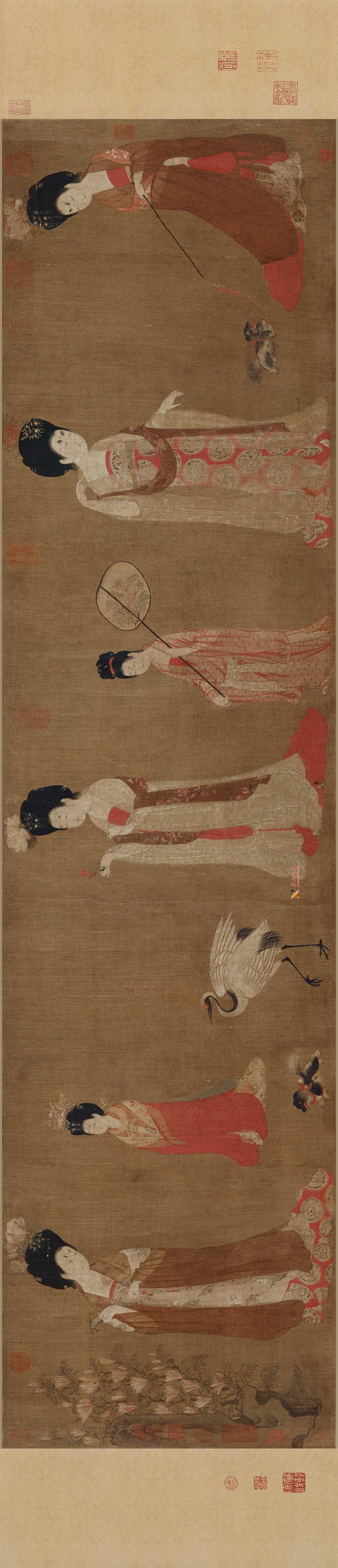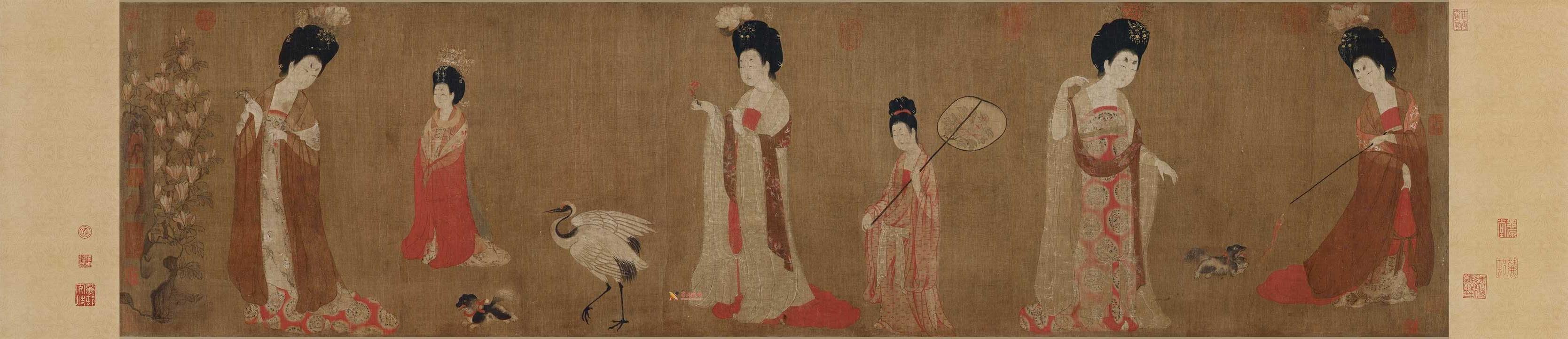 张萱本人的原作并没有现世留存(包括下一幅《捣衣图》),这是宋人的摹本,旧传是徽宗赵佶所摹,这幅画为何在辽宁省博物馆藏也跟末代皇帝溥仪颇有渊源,不光这幅,本回答多幅作品都是民国年初从溥仪手上截获的作品;据考证,这幅画中的所有人物皆为女性,画中几位谁才是虢国夫人也众说纷纭,感兴趣的可以自己去查询;