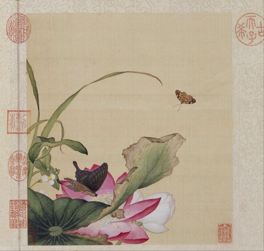 《花鸟图》册,十开,绢本设色,32.5cm*28.5cm,北京故宫博物院藏
