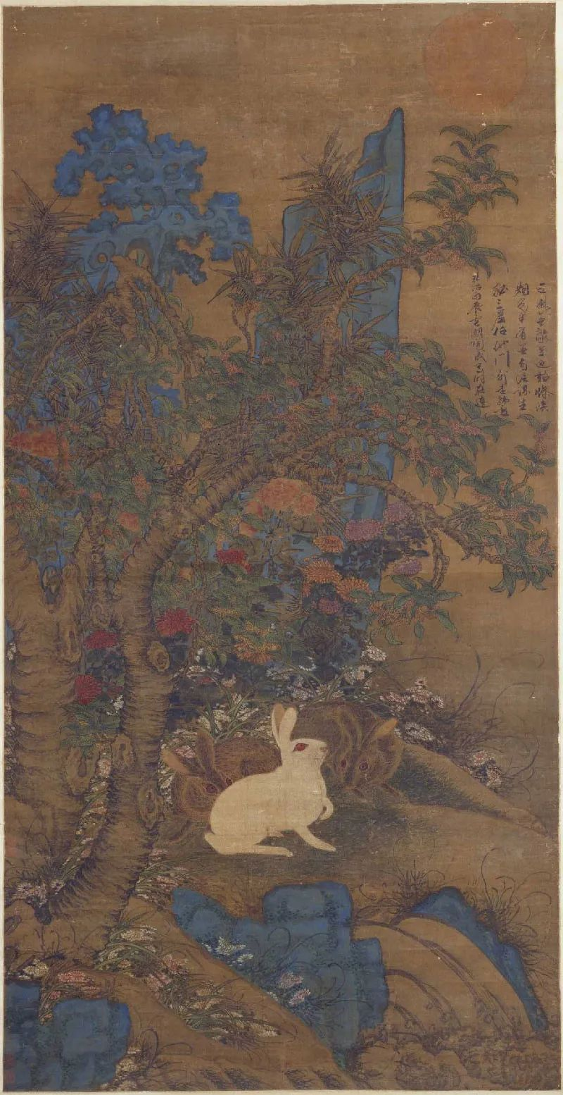 这幅画我看到的时候,有一股恍惚感,它太与众不同了,严格意义上据李霖灿先生的考证推测,应该是出自辽国的作品,系元代皇帝的收藏,与下面那幅《丹枫呦鹿图》互为印证;