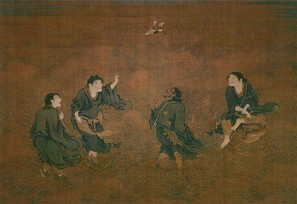 依据曹植的《洛神赋》而作,该画将故事的情节编排于自然山川的环境中形成画面叙事结构(从右至左分别是相遇、欢乐、离别、追思),虽说顾恺之长于对于眼神的描绘,但是窃以为这幅《洛神赋图》传递出情绪的关键是靠人物之间的画面关系和布局处理所展现的(也有可能是摹本不传神的原因,故宫的这件摹本较为古朴),从布局到人物的细节都非常完美,尤其是线条,所谓“春云浮空,流水行地”,无论从哪个角度来看,顾恺之的线条都是自然韵律的绝佳体现,在构置布局上,就叙事学来说,利用山水木石来作为不同时空的叙事情节切换遮挡极具巧思,是相当优秀的作品;