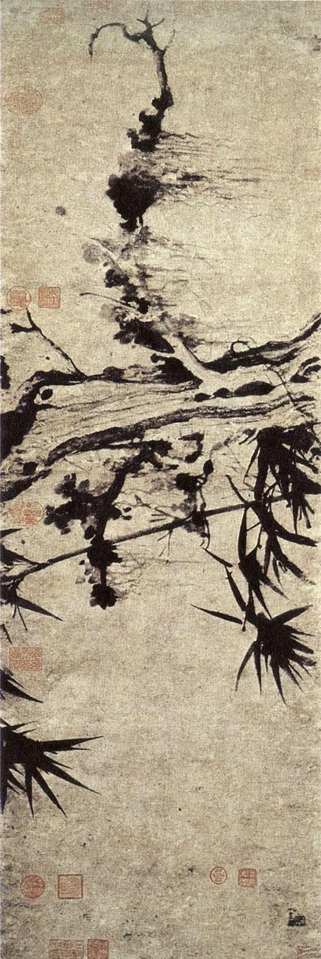 《雪竹图》轴 ,绢本墨笔,151.1cm*99.2cm,上海博物馆藏