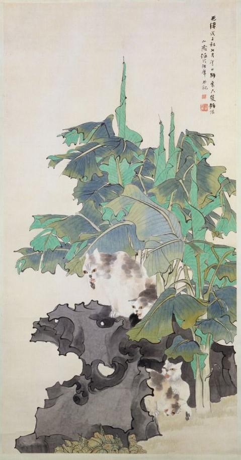 《芭蕉狸猫图》轴,纸本设色,181.4cm*94.8cm,北京故宫博物院藏