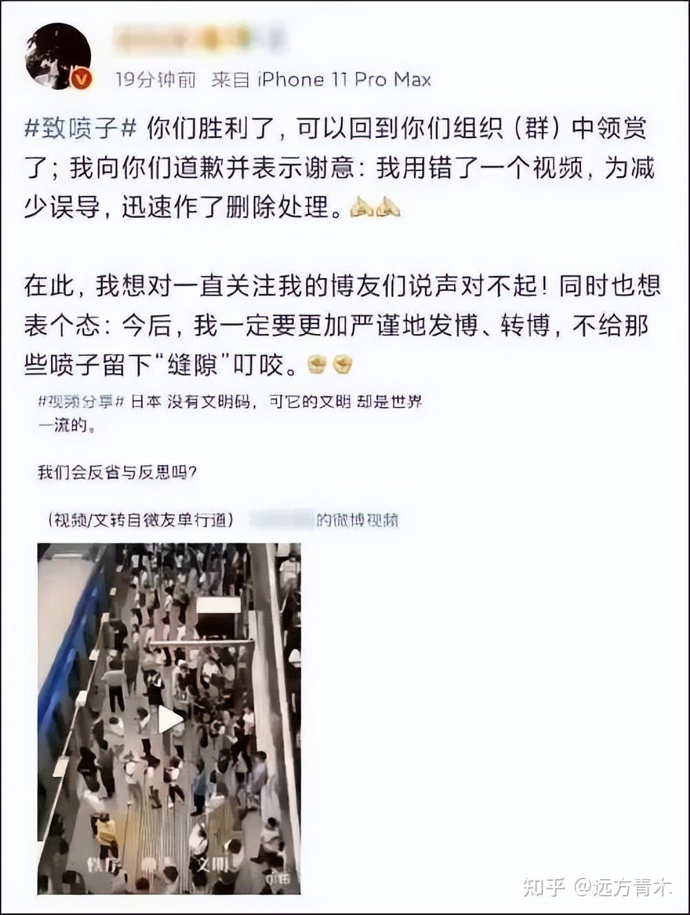 被人狂喷和嘲笑后,这名公知发现自己被那些精日用假视频骗了,立即删了帖子。