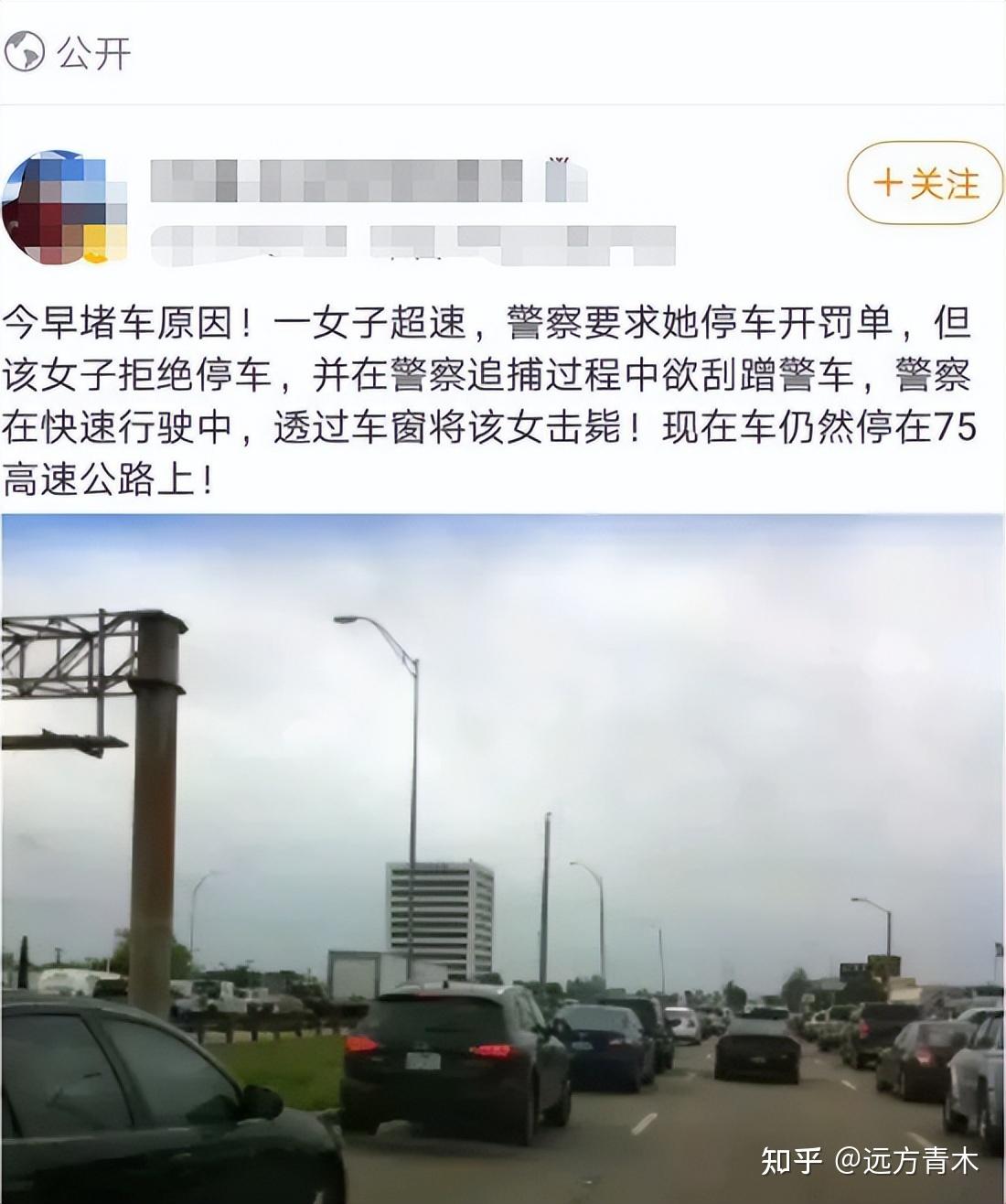 一位钓鱼者发了个帖子,说自己今早堵车的原因是一女子超速,警察要求其停车开罚单,结果该女子拒绝停车,并在警察追捕的过程中试图剐蹭警车,结果警察直接将其击毙,目前这辆车还停在75号高速公路上。