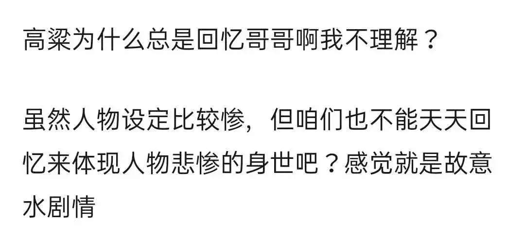 但高粱一集恨不得回忆三回的“祥林嫂行为”成功让人免疫。