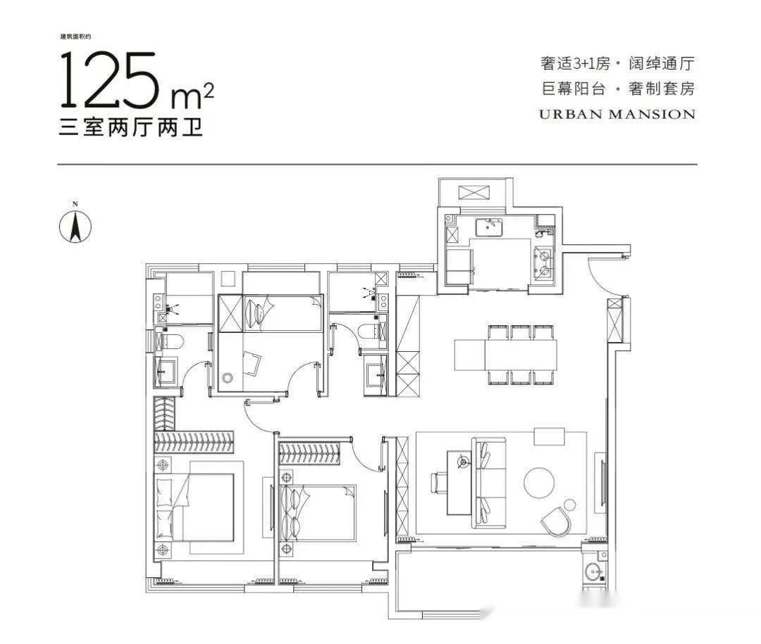 建面约 125㎡三室两厅两卫