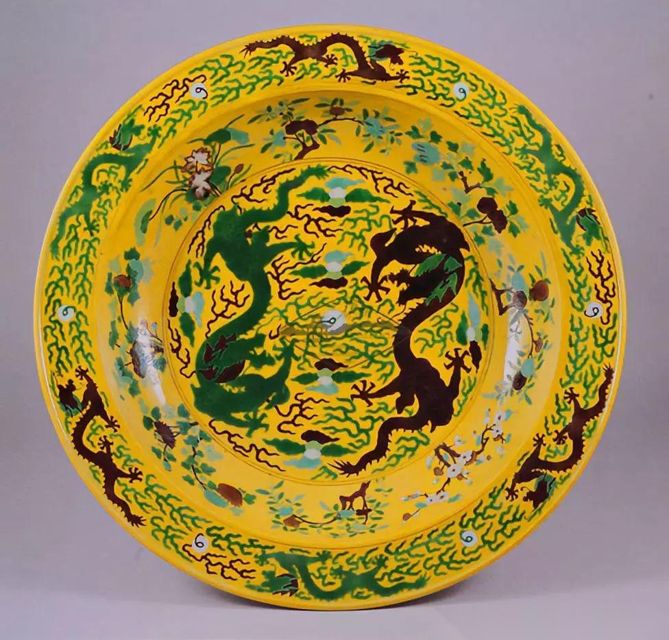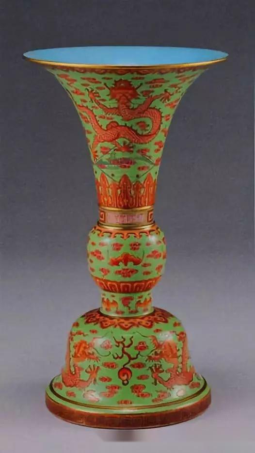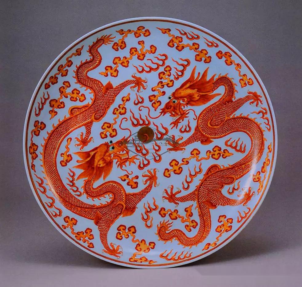 ▼淡绿釉红彩云龙花瓢 清(嘉庆)