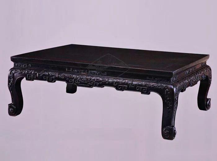 ▼紫檀有束腰三弯腿拐子龙纹炕桌 清中期