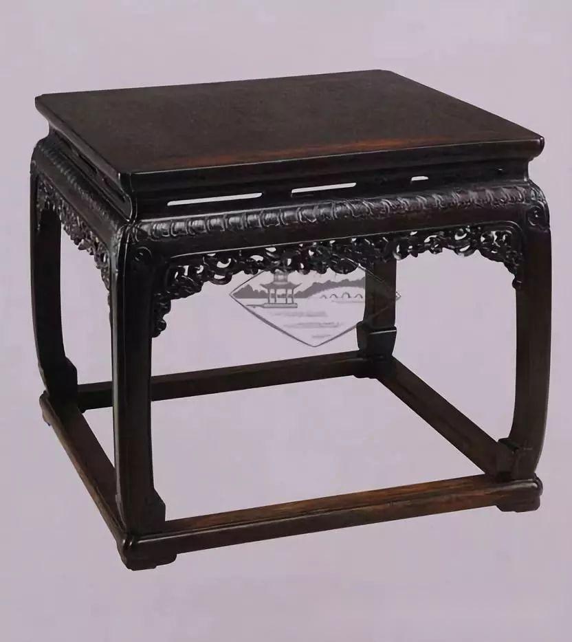 ▼紫檀高束腰托泥雕卷草纹大方凳 清中期